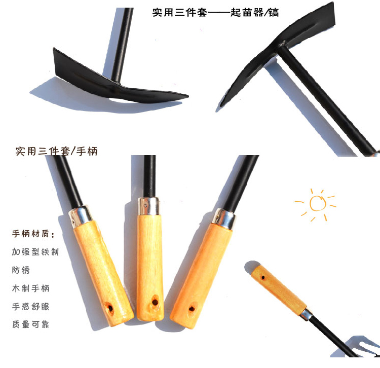 | Цвет: | Три -набор деревянных ручек, Лопата, Грабли, Мотыга |