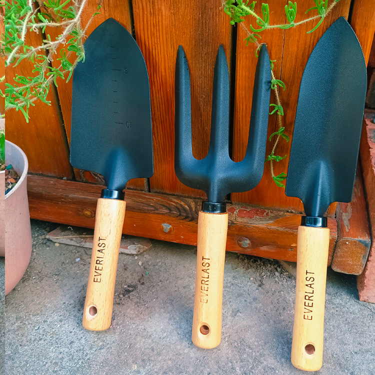 - Деревянная ручка широкая лопата+три вилки
