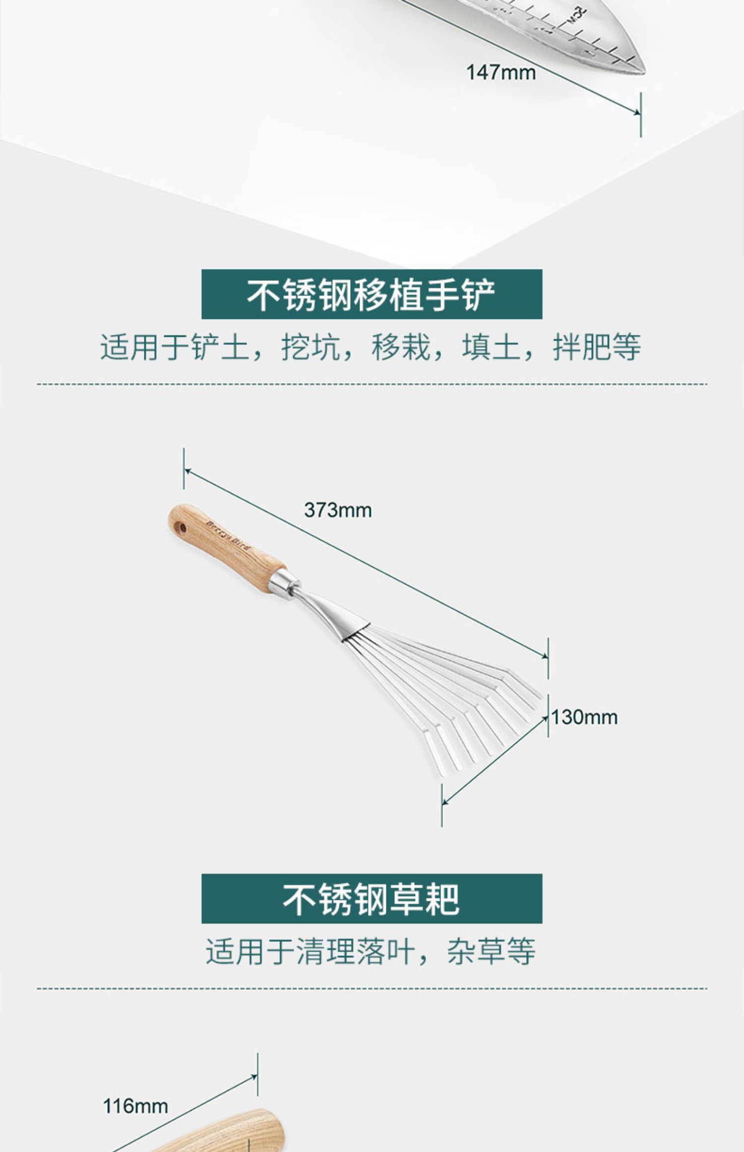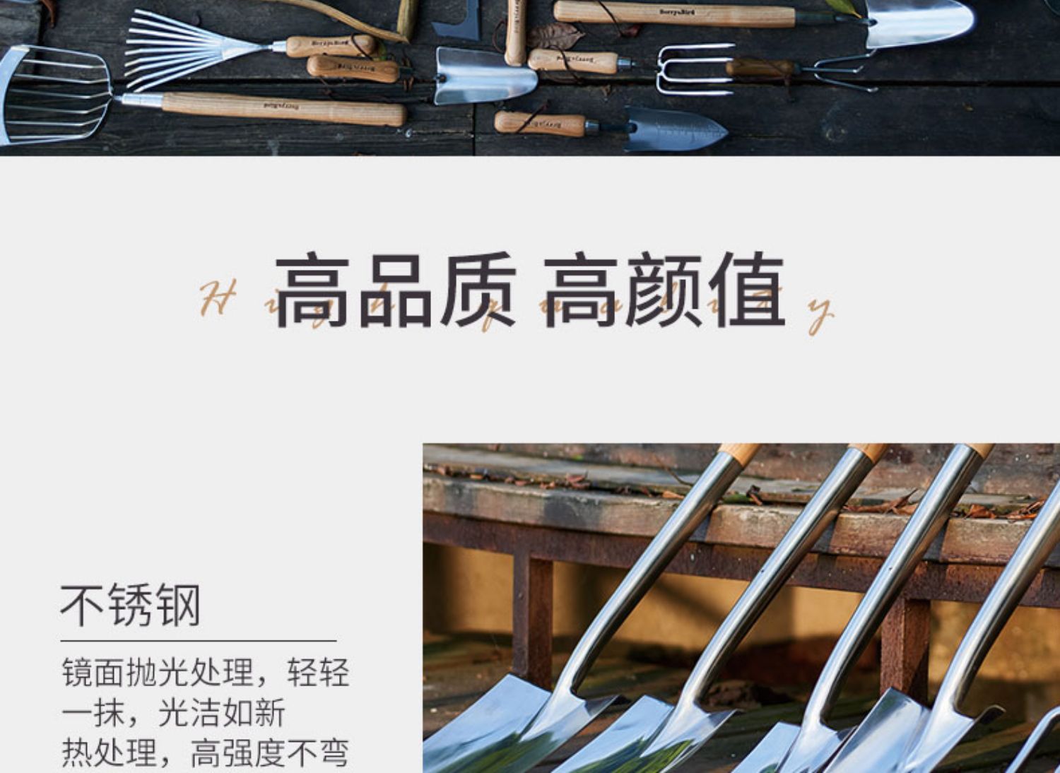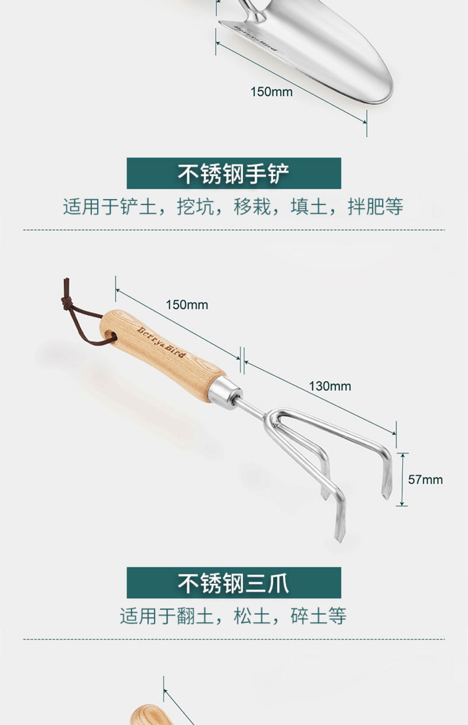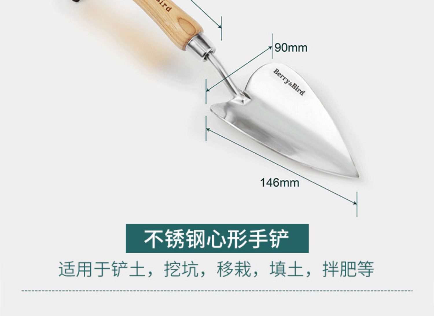 Berrybird Shovel на открытом воздухе копает инструменты для цветов почвы для домашнего садоводства Три -кучарные ямы Маленькая железная лопата 锹 Артефакт