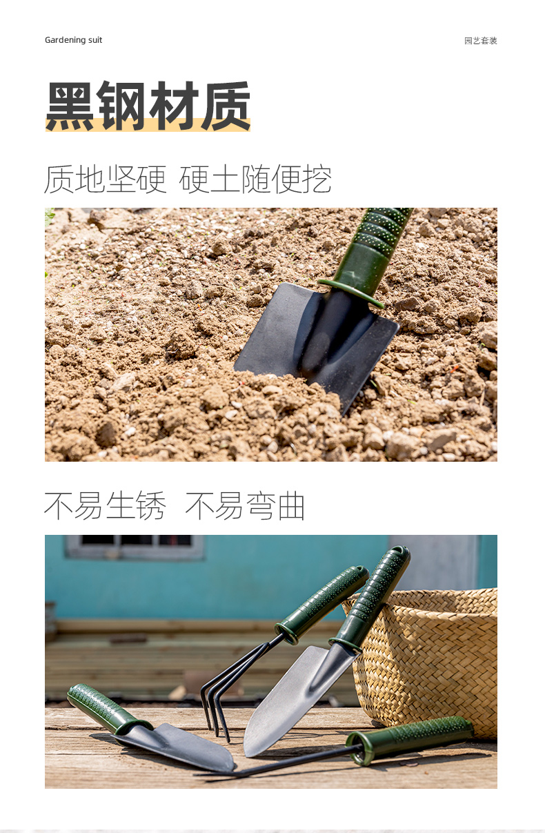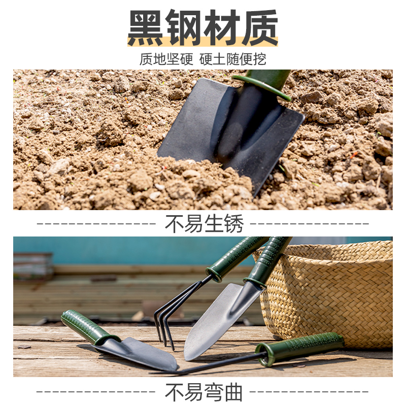 - [Твердый/утолщенный/анти -рустный] Три -купольный набор (широкая лопата+отверстия+грабли)