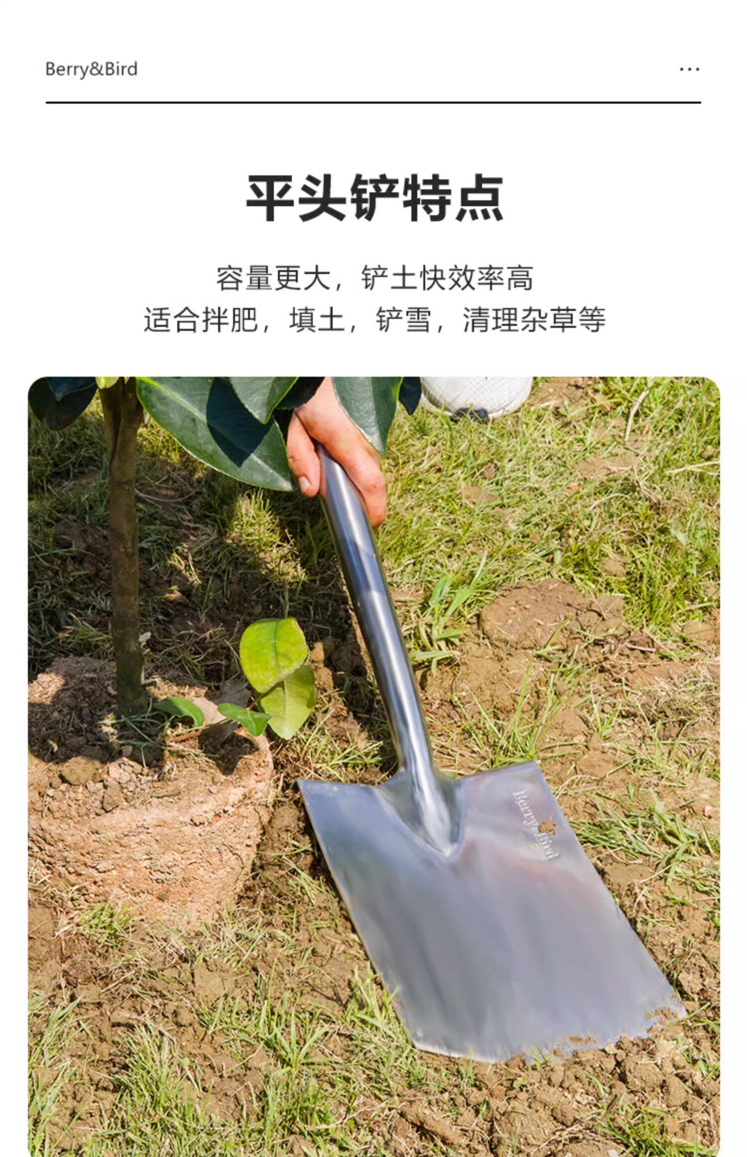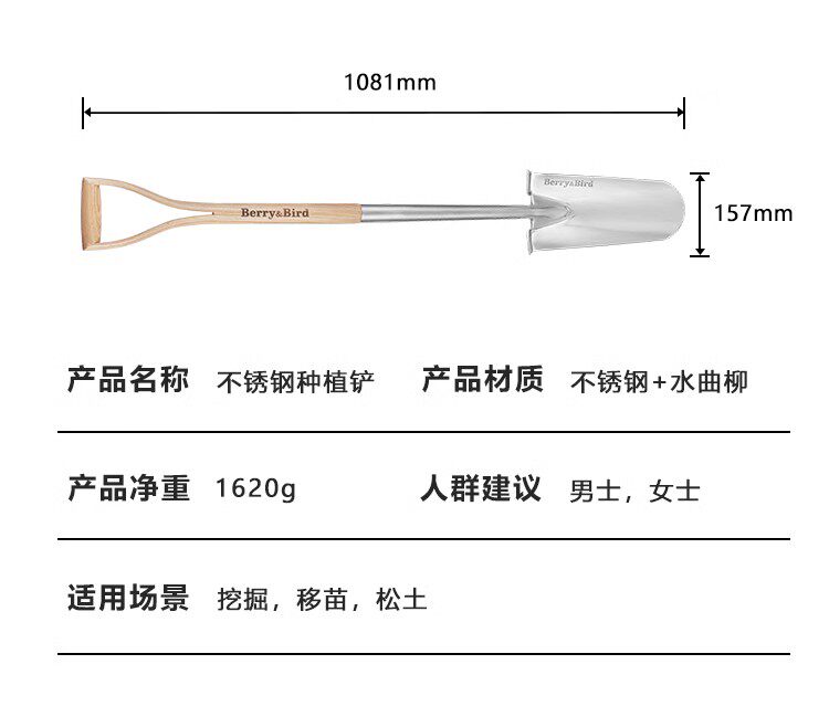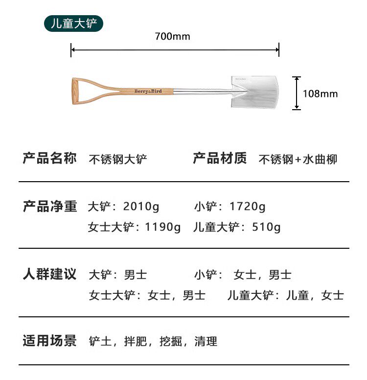 Ягода и птица сгущенной из нержавеющей стали крупная лопата лопата на открытом воздухе для копания