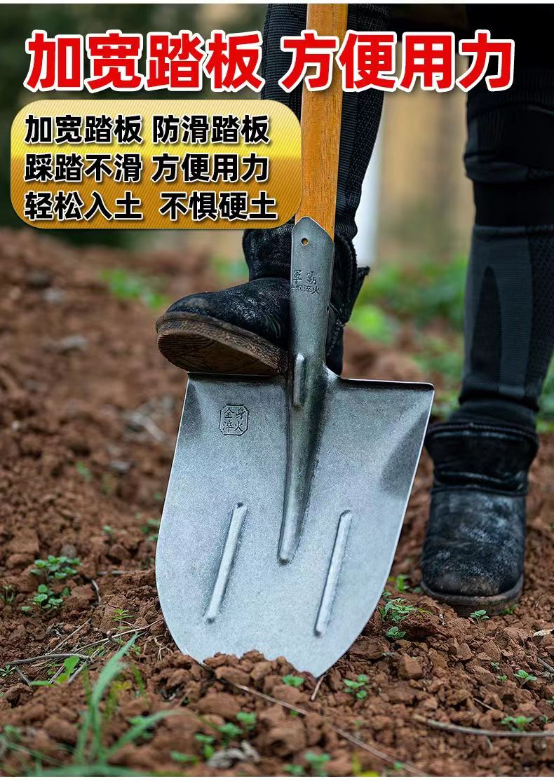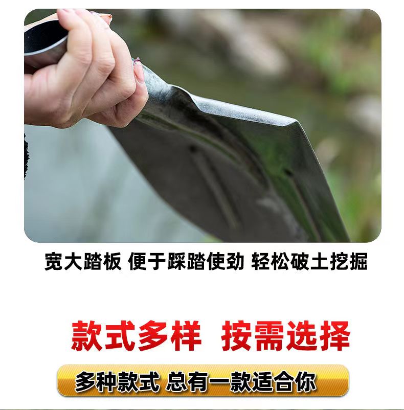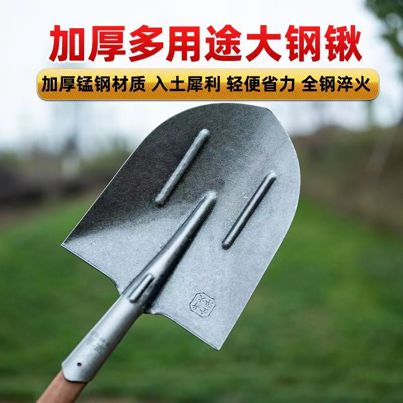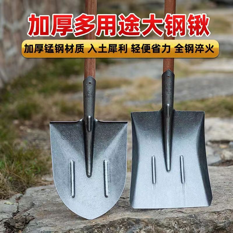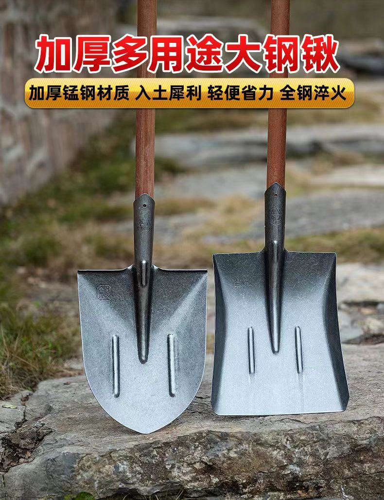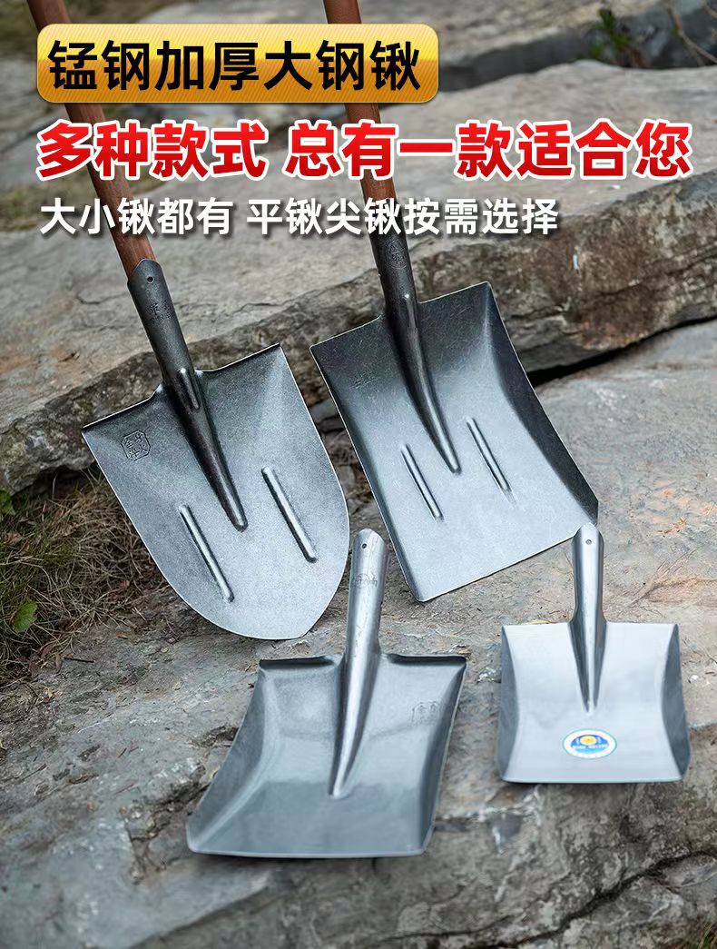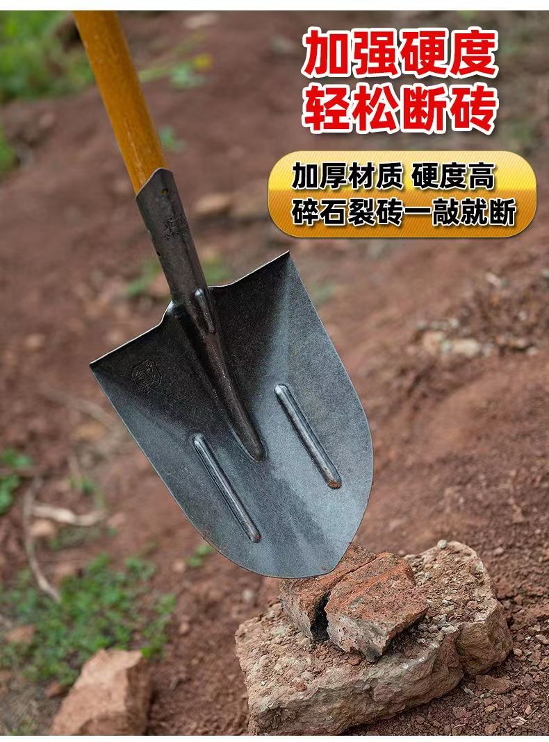 [工地钢锹农用铁锹头铁铲木把铁撬猛钢铲子方锹尖锹泥锹铁锹大全]