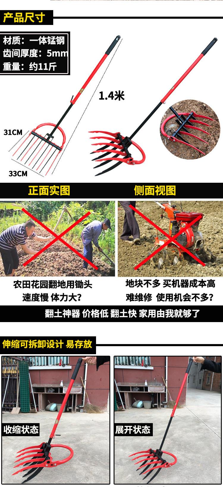 [翻地松土神器人工翻土开荒铲子园林艺深翻器农用家用种植工具钢叉]