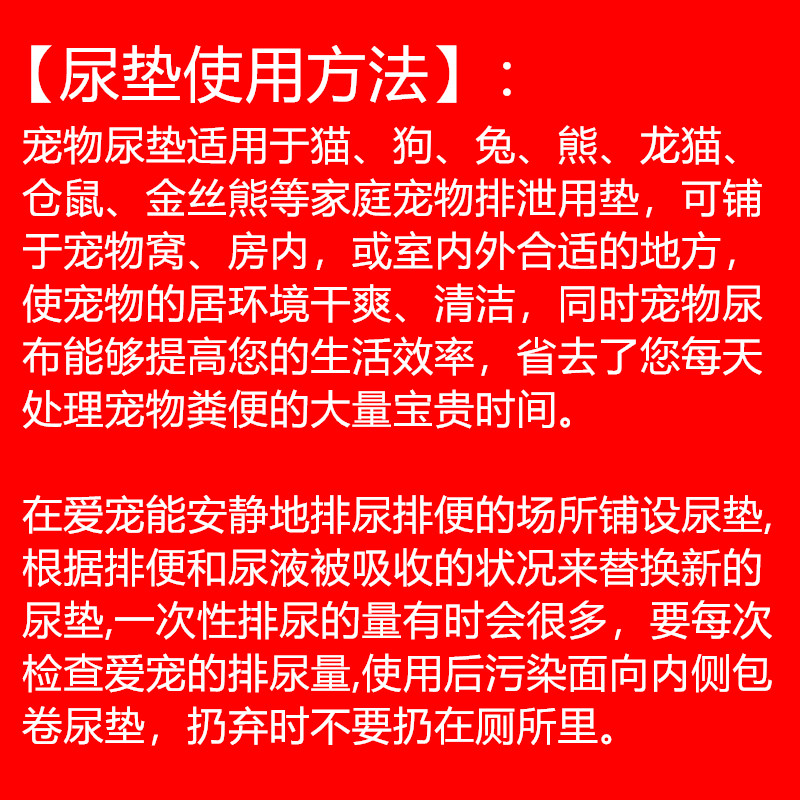 [Как использовать]: Pet моча подходит для семейных домашних животных, таких как кошки, собаки, кролики, медведей, моего соседа, хомяка, золотых медведей и других семей. Среда жилья для домашних животных сухой и чистой. В то же время,, Подгузник для домашних животных может повысить вашу жизненную эффективность, устранив много драгоценного времени для вашего ежедневного лечения питомца.