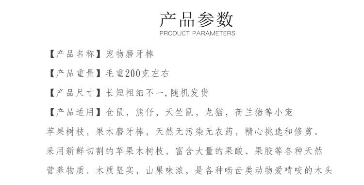【Применимы Продукты】 Хомяки, медведи, морские свинки, шиншиллы, голландские свиньи и другие домашние животные. Яблочные ветви, шлифовальные палочки с фруктами, натуральные, без загрязнения и без пестицидов, тщательно отобранные и обрезанные.Свежее разрезание ветвей из яблоневого дерева богаты большим количеством фруктовой кислоты, пектина и других натуральных питательных веществ.Твердый древесина, сильный горный фруктовый вкус, - это дерево, которое любят укусить все виды грызунов
