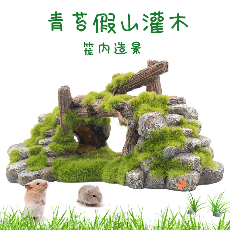 Продукты хомяка, хомяки, золотые шелковые медведи делают пейзажи, мох Мосс Петуты поднимаются в гнездо для домашних животных.
