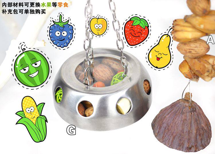 Игрушка попугая кусает шкалки с орехами зубов и фрукты, игрушки для кормления, натуральные стручки, красочные различные