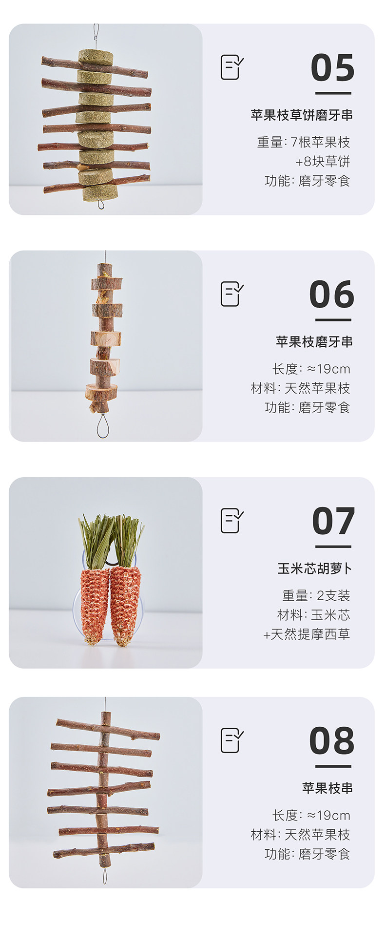 | Цвет: | Зубные закуски натуральный сладкий бамбук (≈100 г), Зубные яблочные ветви (≈100 г), Тимоти травяная палка (≈250 г), Apple, смешанный, 22см, Морковь кукурузы (2 штуки), 8 натуральных пирогов люцерны, Apple Branch Round Cake Skewhers (1 струна ≈19 см), Строка ветвления Apple (1 строка ≈19 см), Милая клубника, 3 шт |