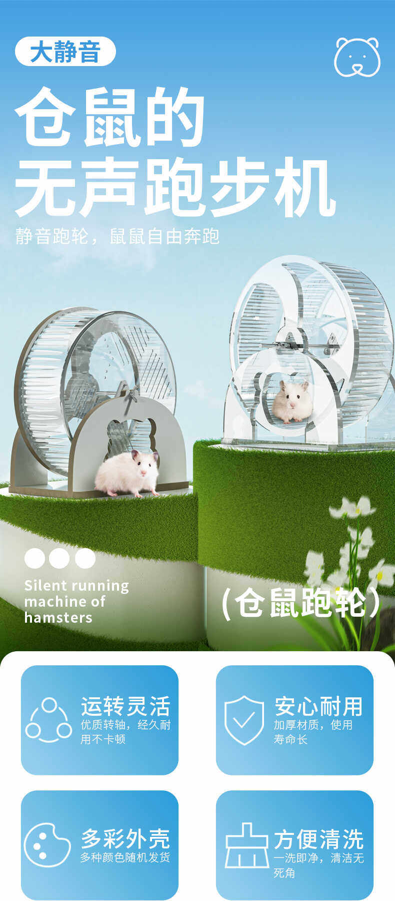 Anti -Shake Hamster Silent Running Wheel 24 см. Большой ролик золотой шелковый медведь.