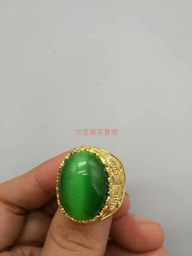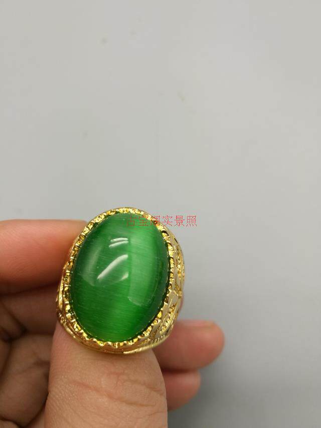 Зеленая инкрустация камня, кольцо с камнем, кошачий глаз, с драгоценным камнем