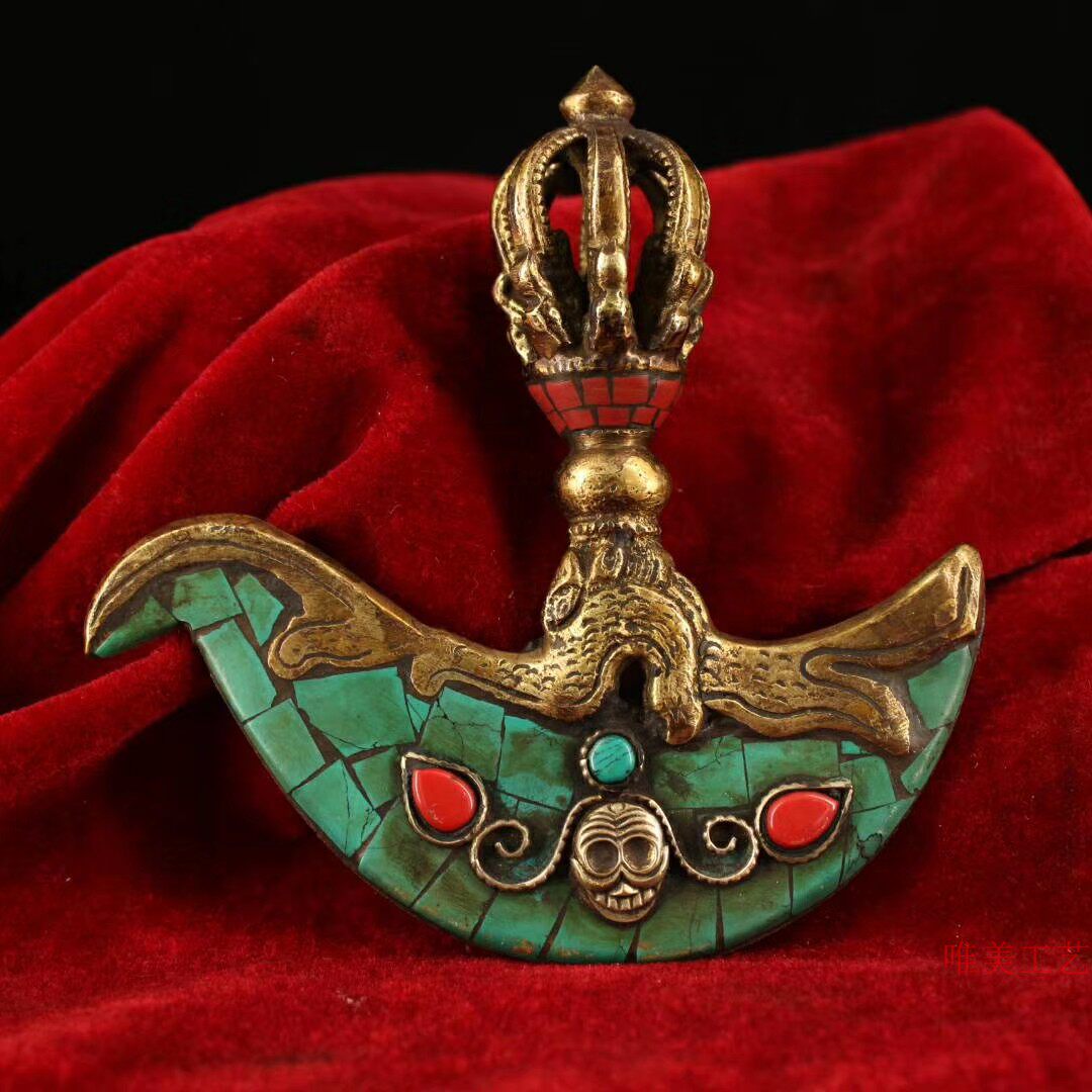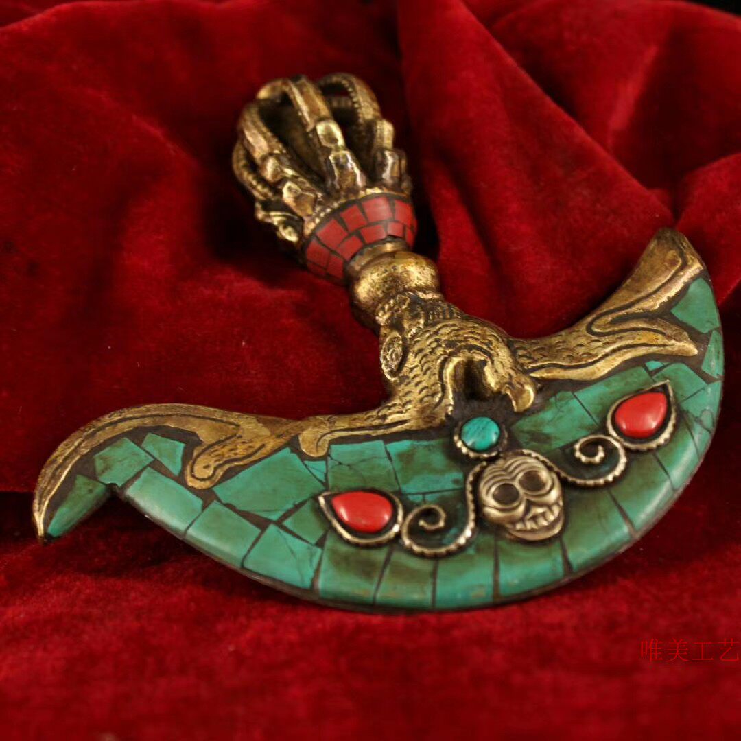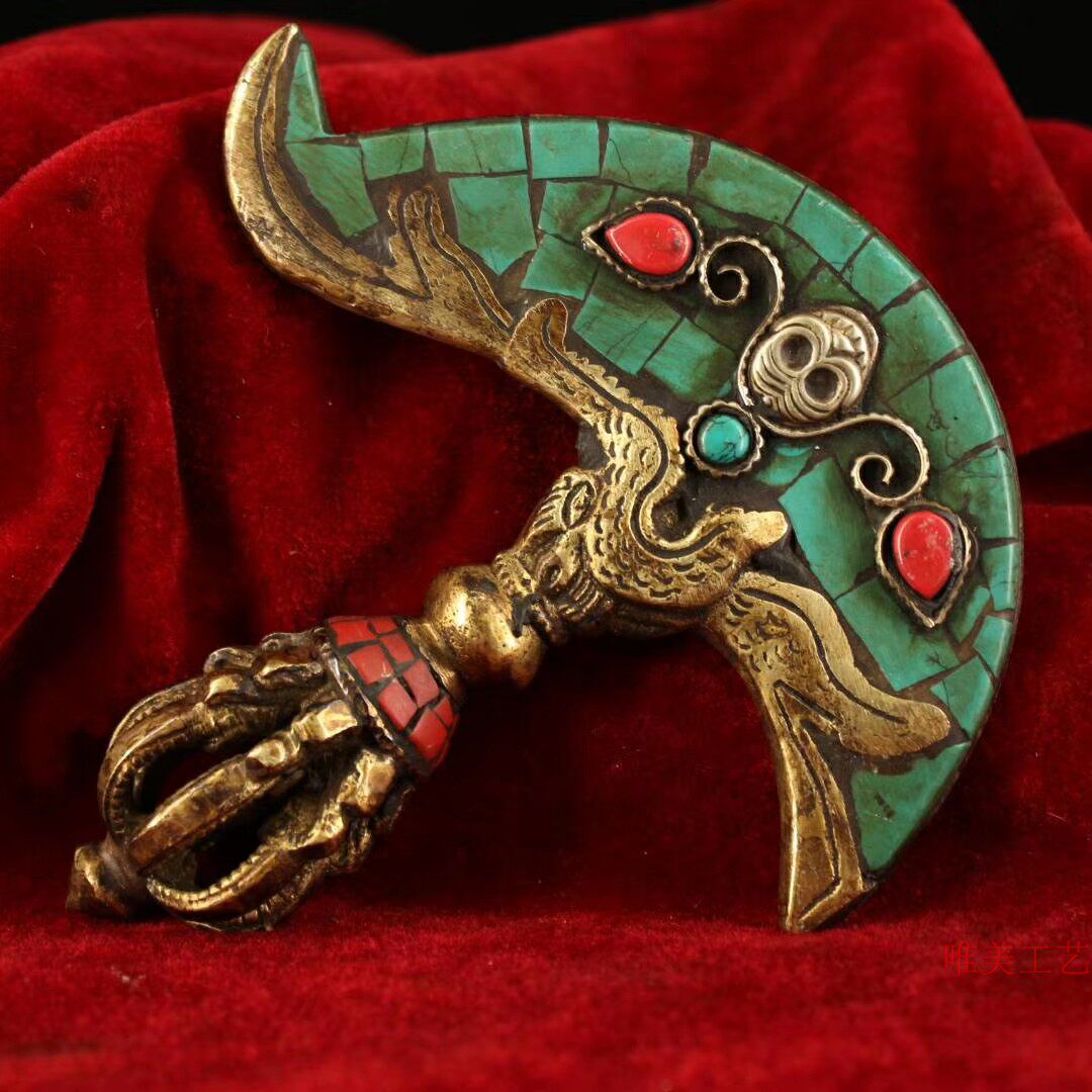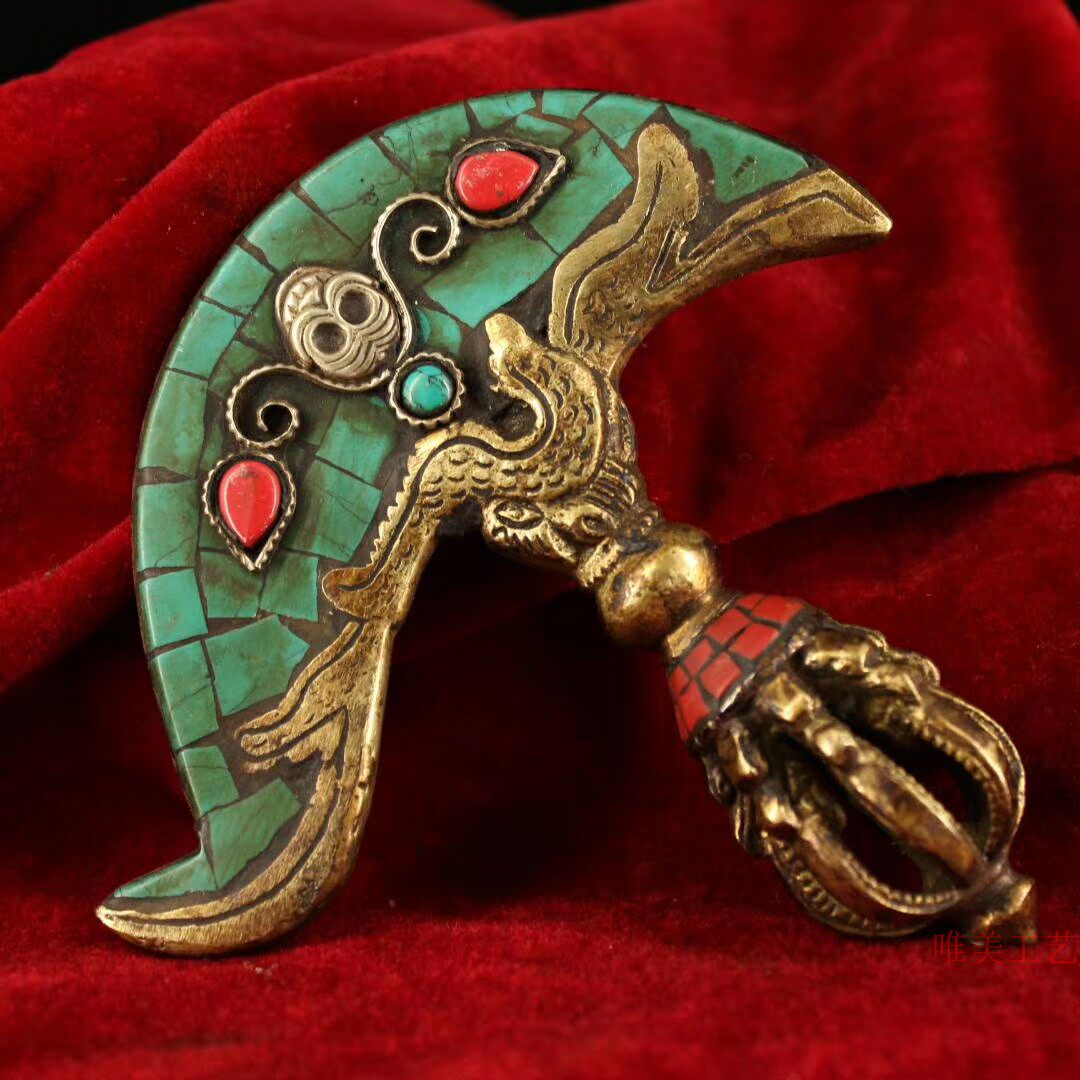 ТибетхрамСтарая чистая медьРучная сделанаПостроить инкрустациюВстроенное сокровищеШи ДуодзикинЖесткий топорИнструмент Весом 229 граммов Long 11.5см 12см