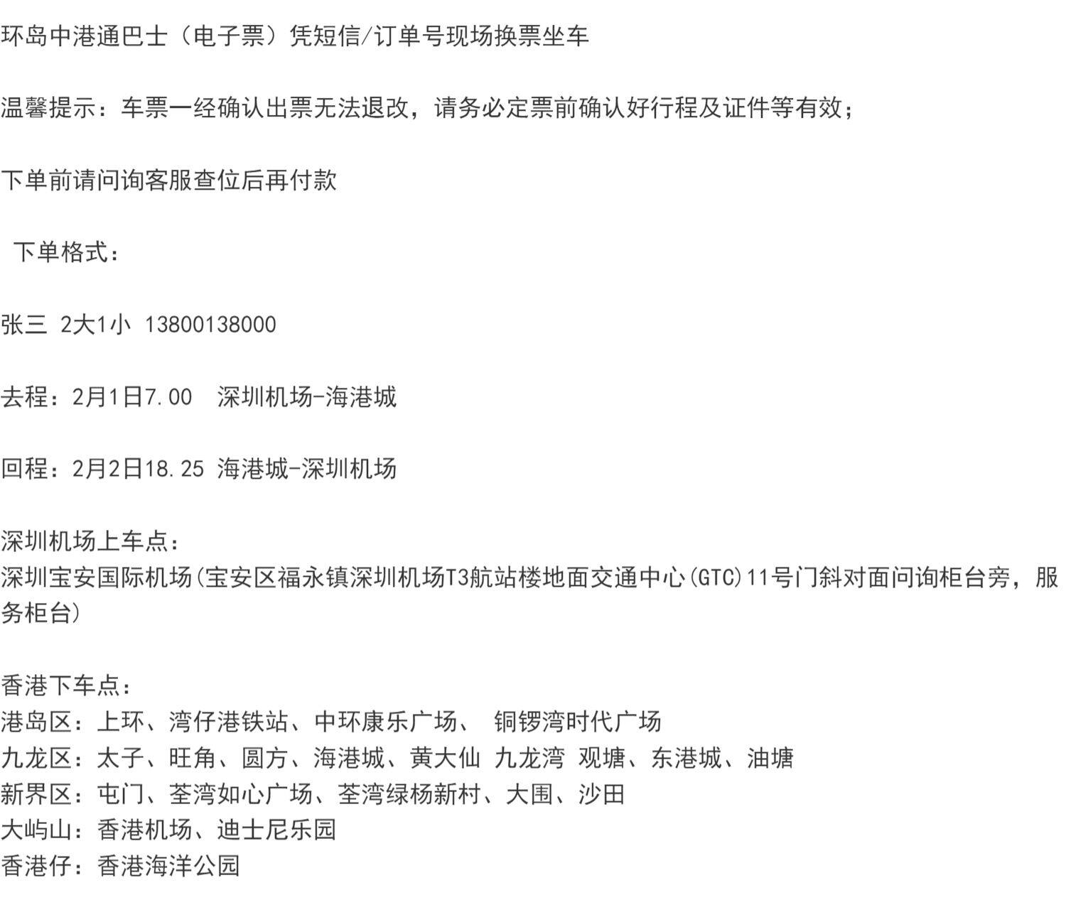 | Региональное расположение: | Аэропорт Шэньчжэнь ➜ Kowloon/New Territories (один билет), Аэропорт Шэньчжэнь, район острова Гонконг (один билет), Аэропорт Шэньчжэнь ➜ Аэропорт Гонконга (один билет), Аэропорт Шэньчжэнь ➜ Дисней (один билет), Коулун/Новые территории 机 аэропорт Шэньчжэнь (один билет), Гонконгский островный район ➜ аэропорт Шэньчжэнь (один билет) |