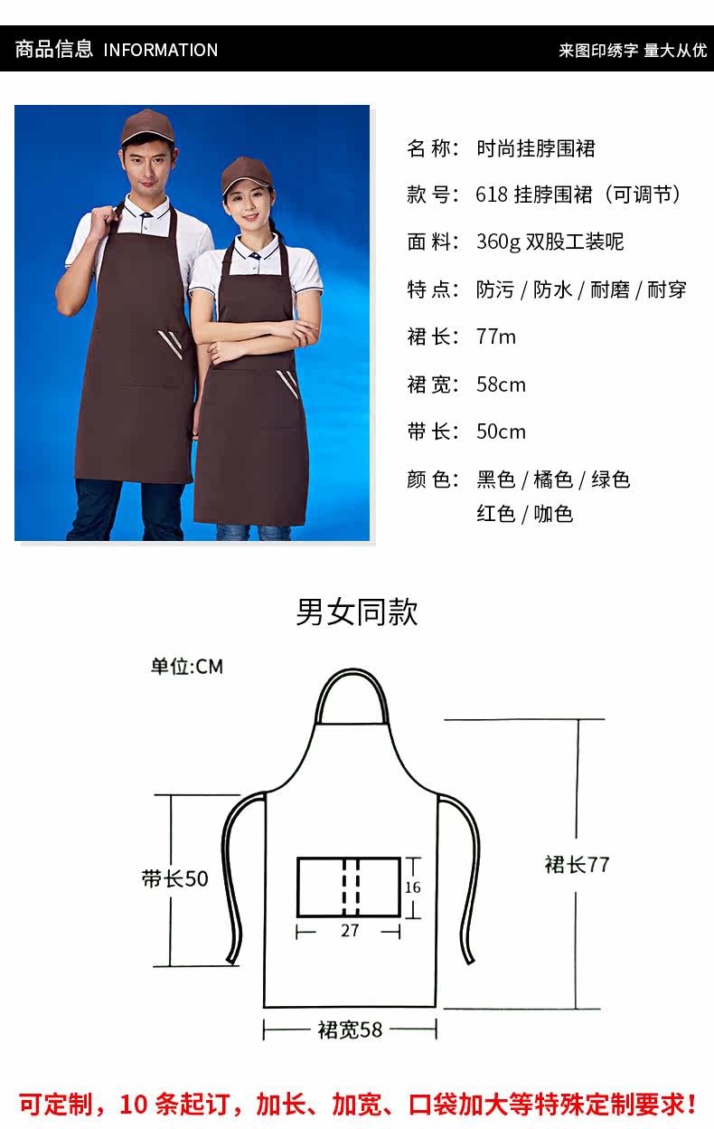 Фартук, кофейный цветочный магазин для маникюра для работы, делается под заказ, с печатью вашего логотипа