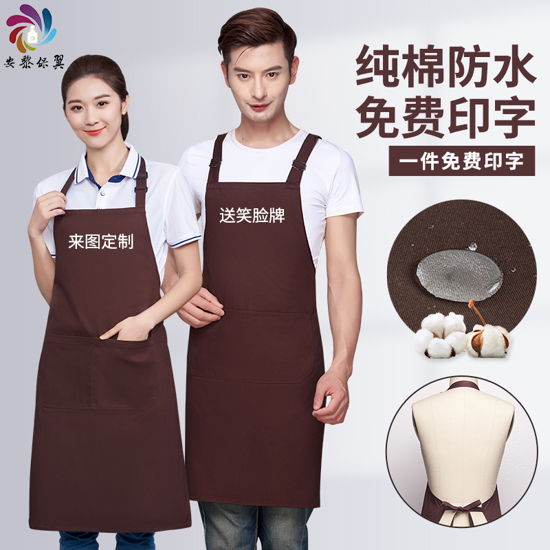 Хлопковый водонепроницаемый модный фартук для работы, в корейском стиле, делается под заказ, с печатью вашего логотипа