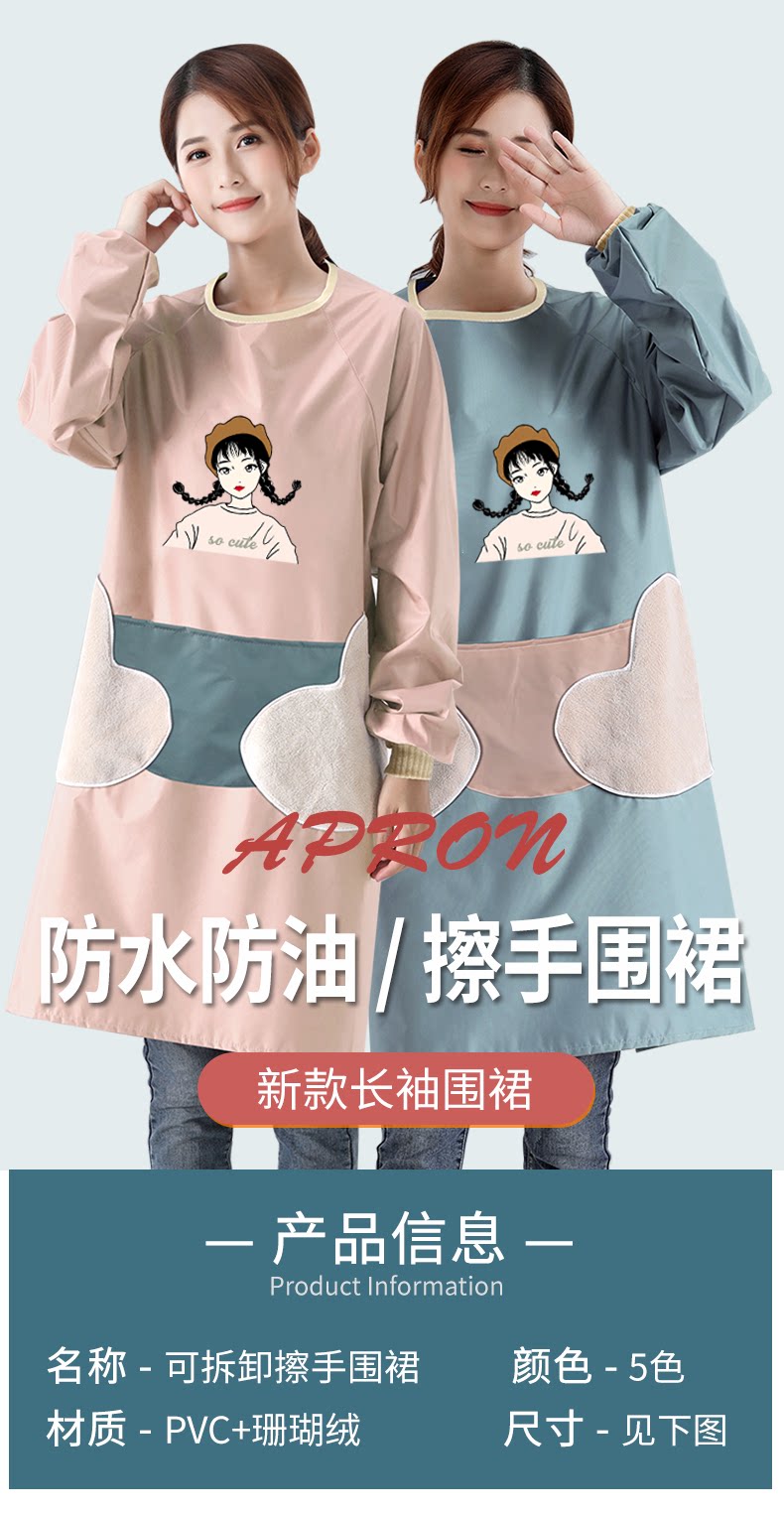 Фартук, юбка, водонепроницаемый милый лонгслив, японский модный нагрудник для работы, в корейском стиле