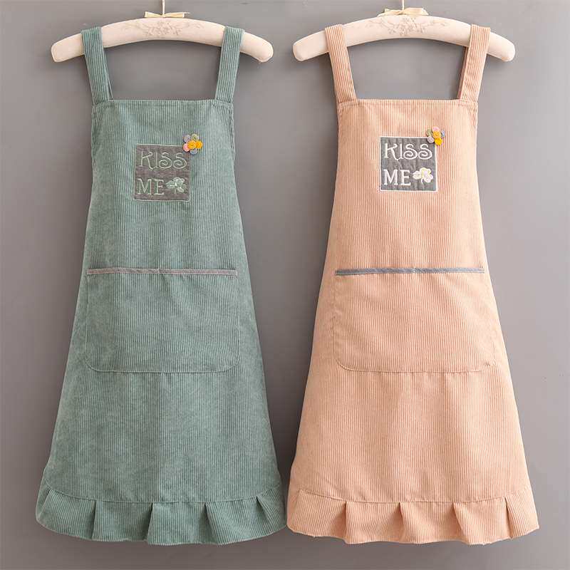 Вельветовый модный водонепроницаемый дышащий фартук, с вышивкой, коллекция 2022, в корейском стиле