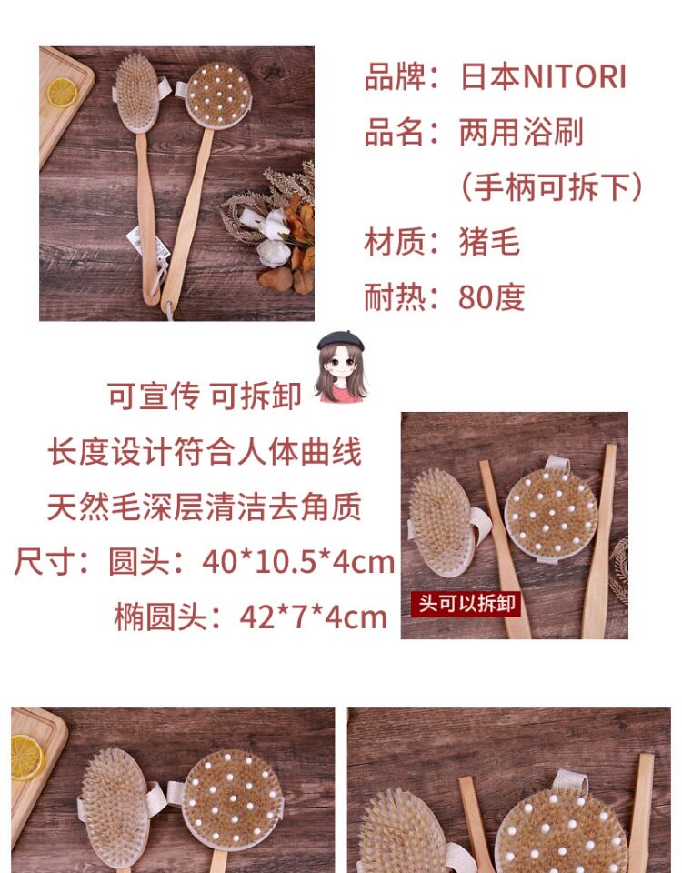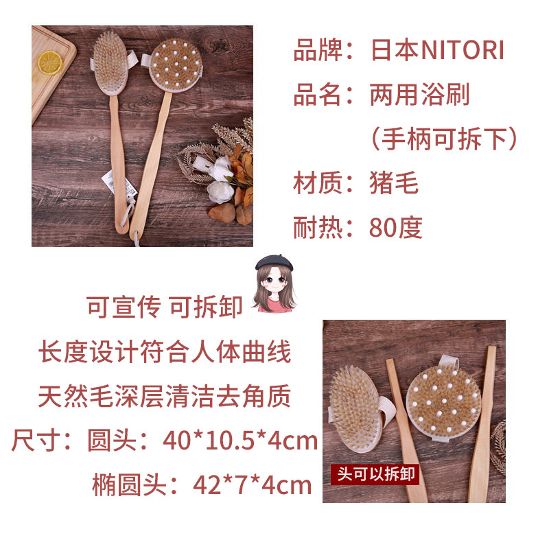 Япония Nitori nideli Массажная ванна щетка нейлоновая двойная щетка головка может удалить натуральные волосы свиньи