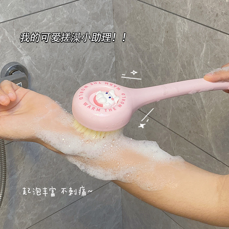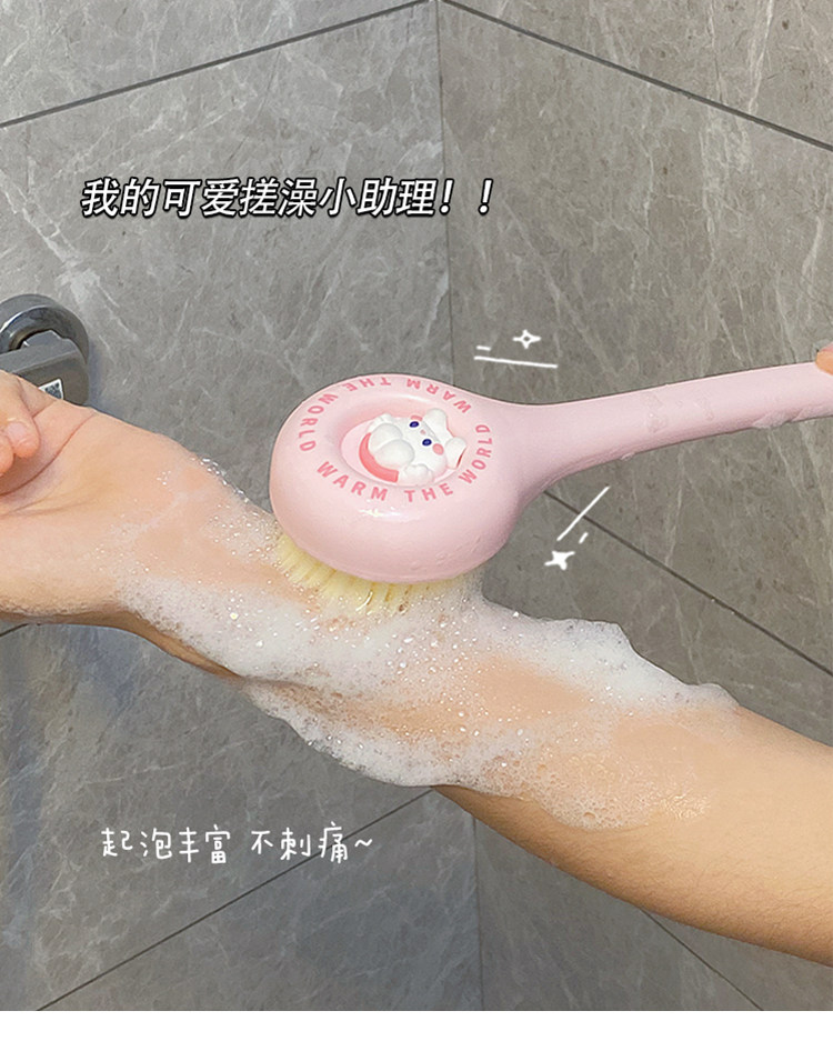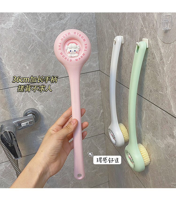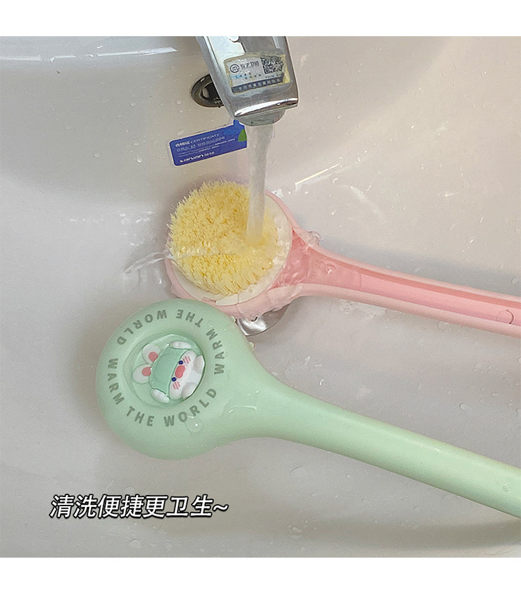 Мягкие волосы купают щетку назад в спину, не просите длинную ручку кисти мультфильм, мусорная грязь, раскатайте спину, потирая назад, потирая спину артефакта