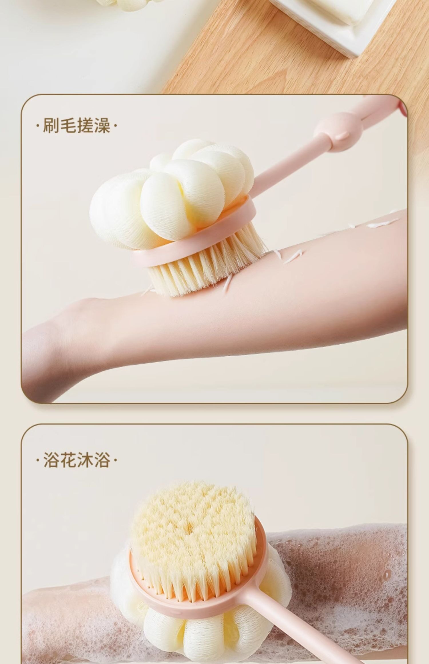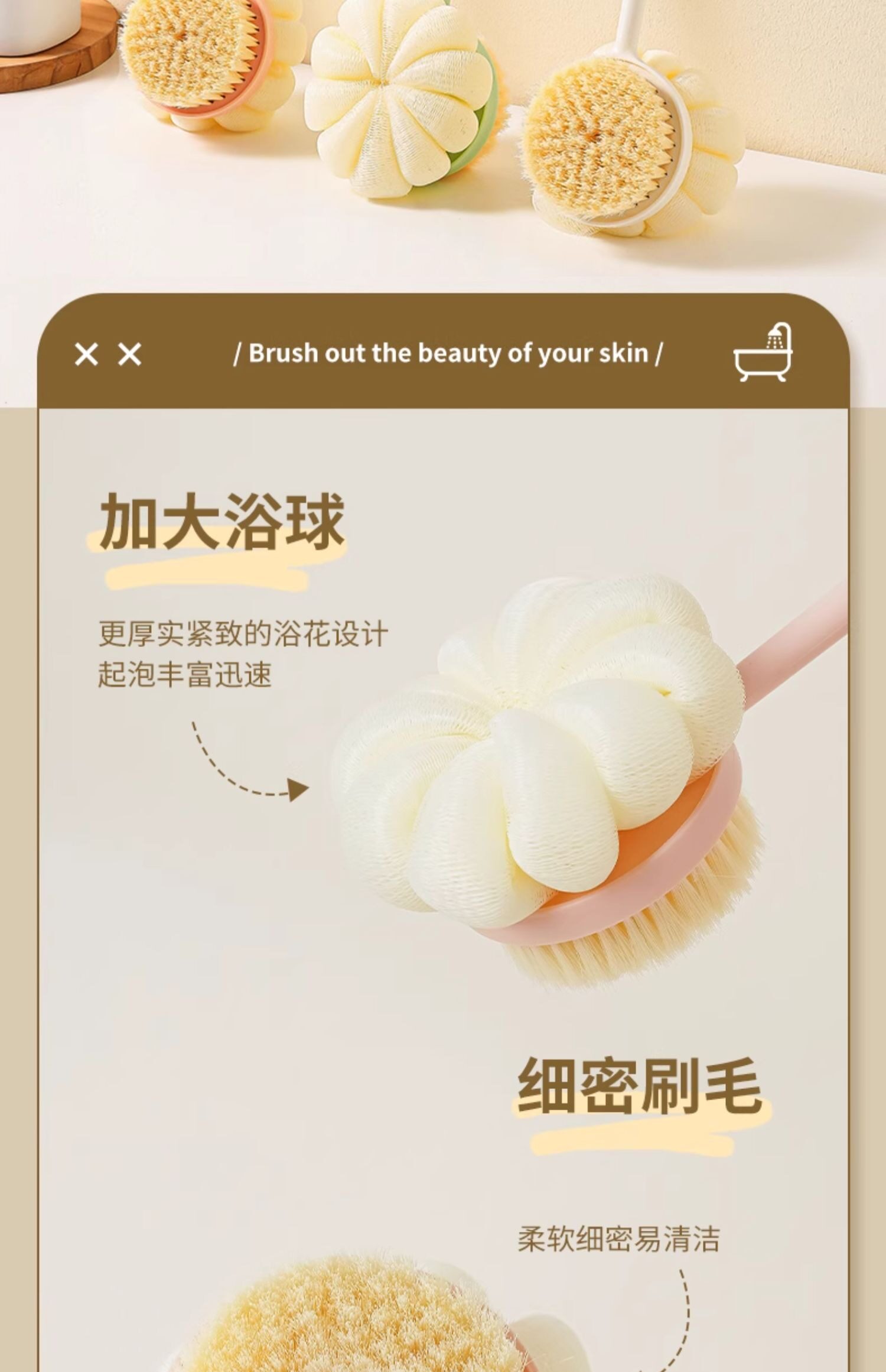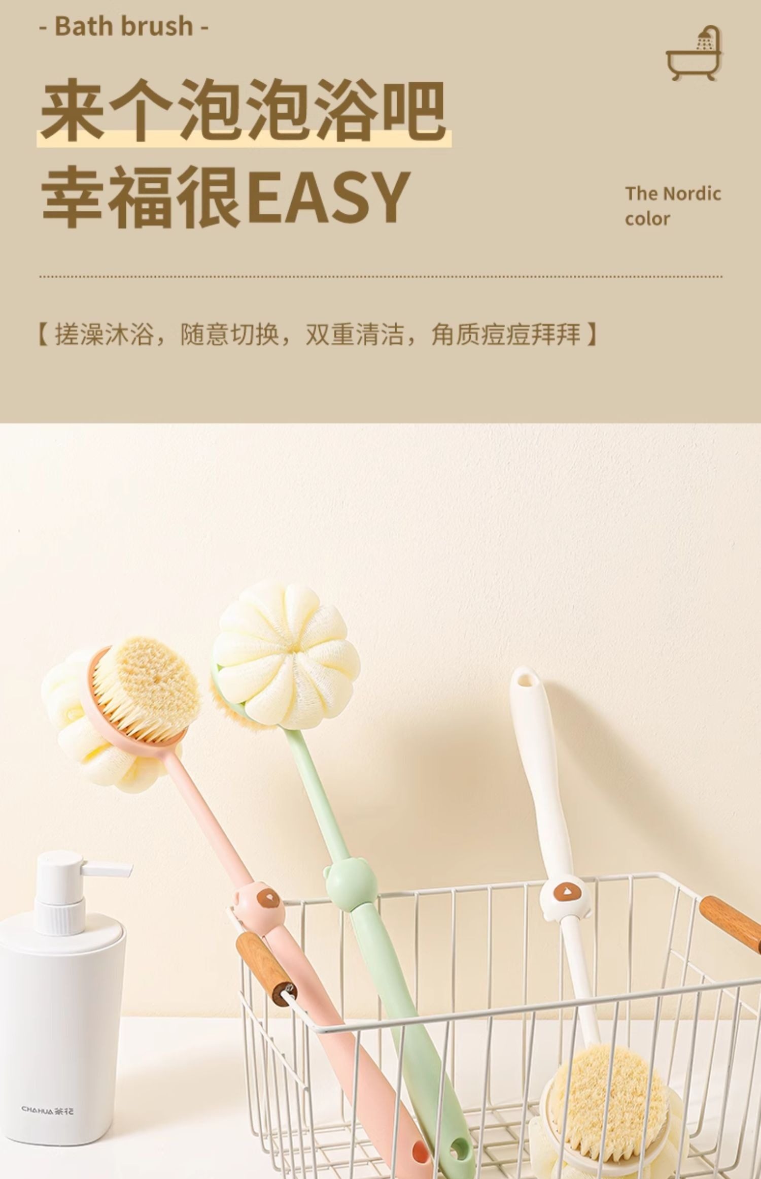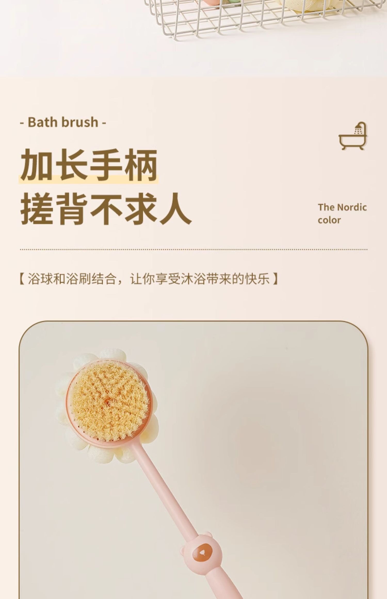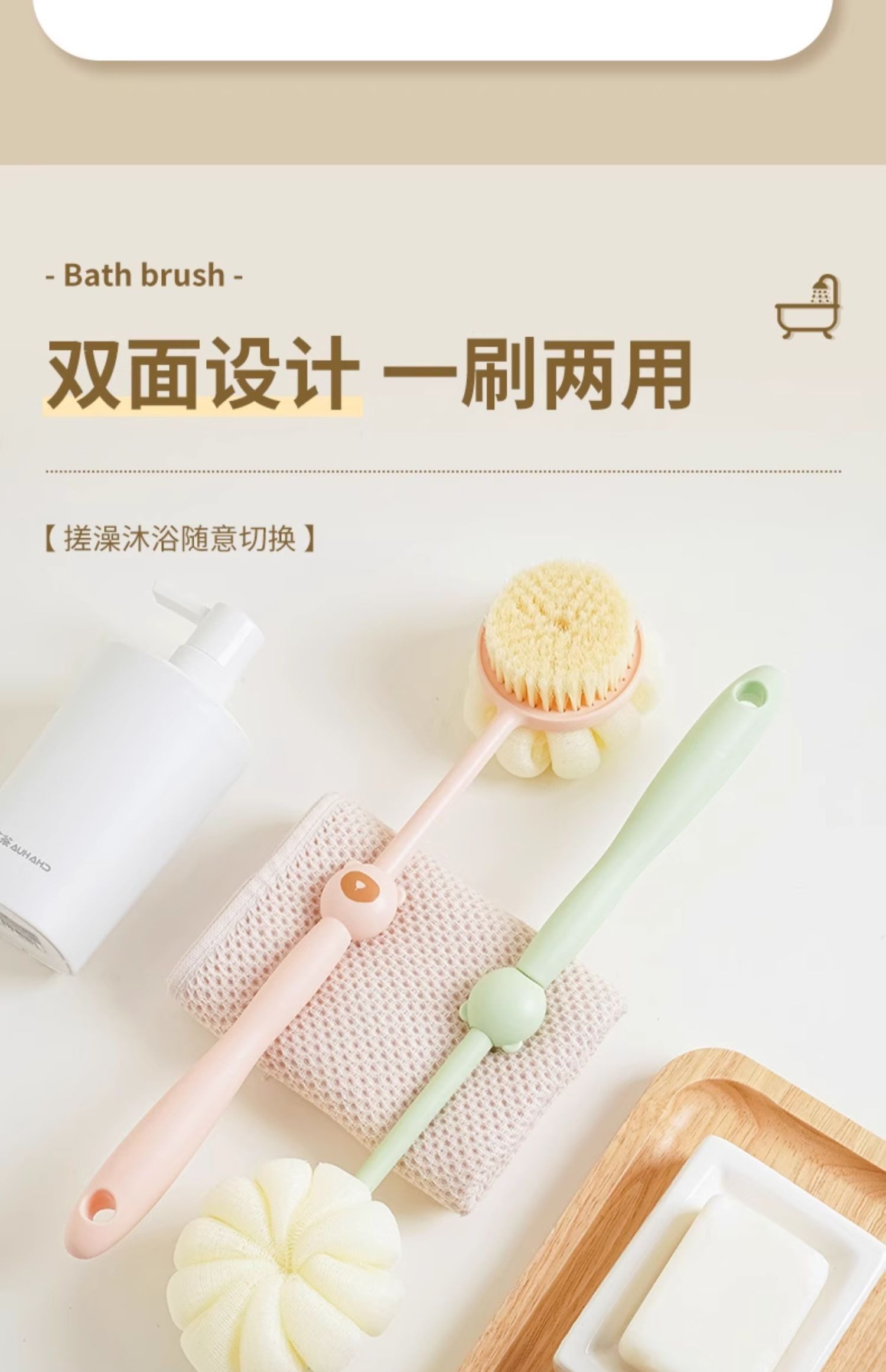 Купание щетки назад, обратно в спину, не просите с кисточкой с длинной ручкой, мягкой кистью, сдвоенной ванной, грязью, грязью, ванной пепла, артефактом спины