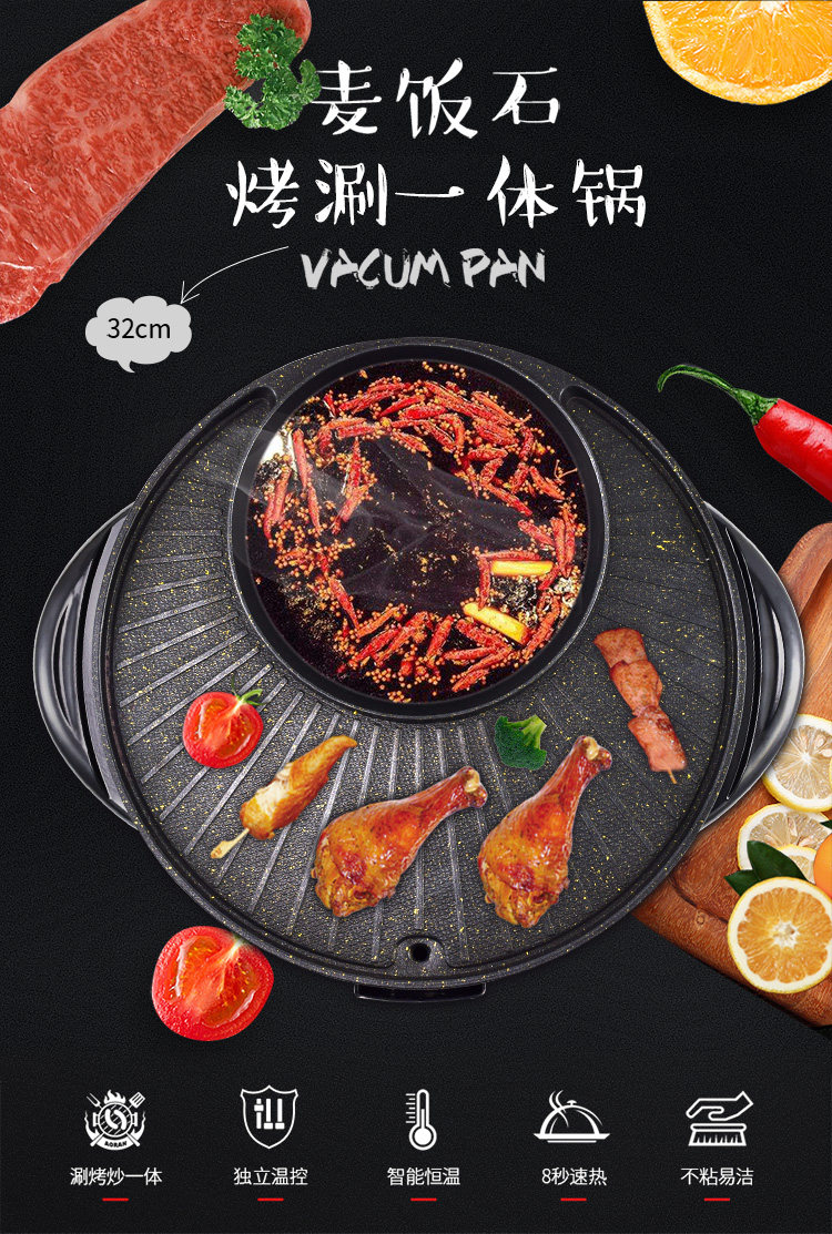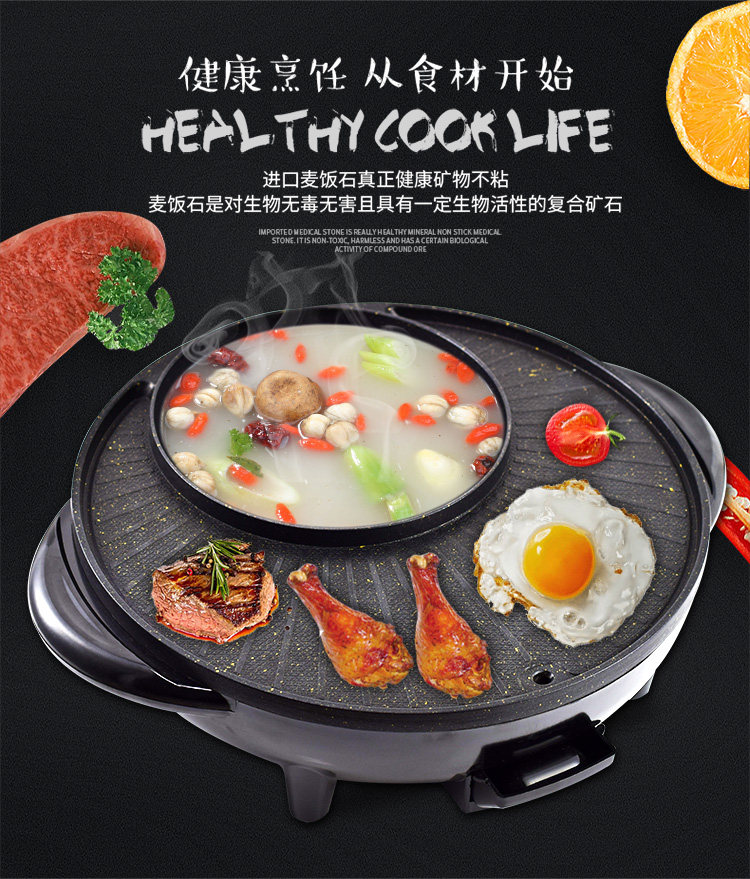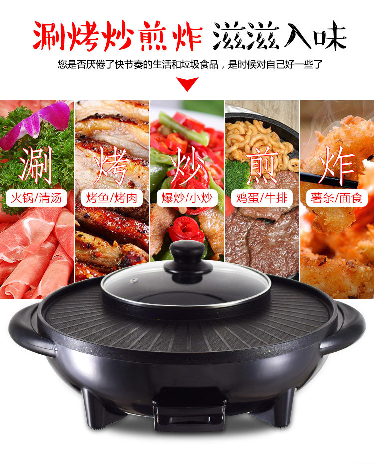 Домашний электрический горячий горшок Shabu -Shabu Hot Pot Integrated Furnace Corean Multi -Functional Electric Hot Pot Barbecue Machine не насыщенный бездым