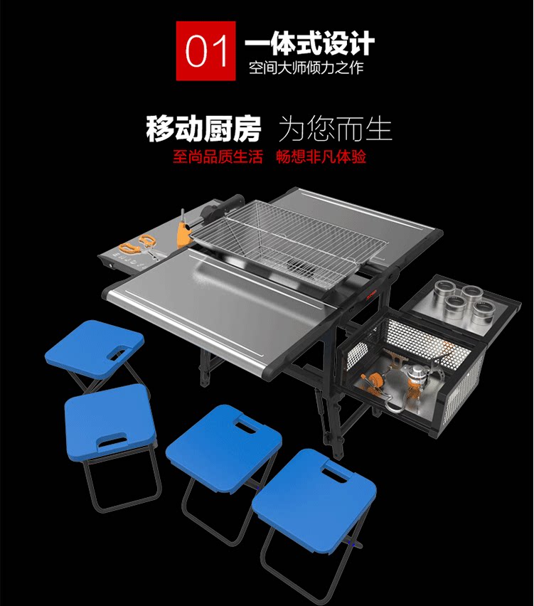 Yingbiede CF-1604C Портал-автомобиль Портал-автомобиль Портативный складной складной мобильный кухонный костюм для барбекю Бесплатная доставка