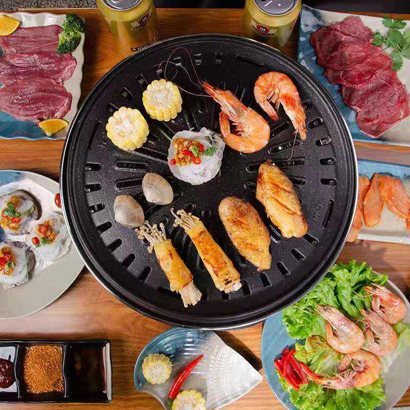 Толстый корейский стиль многопрофильный чугунный угольный угольный печь не -штук для барбекю для барбекю Коммерческая круглое углеродистое барбекю.