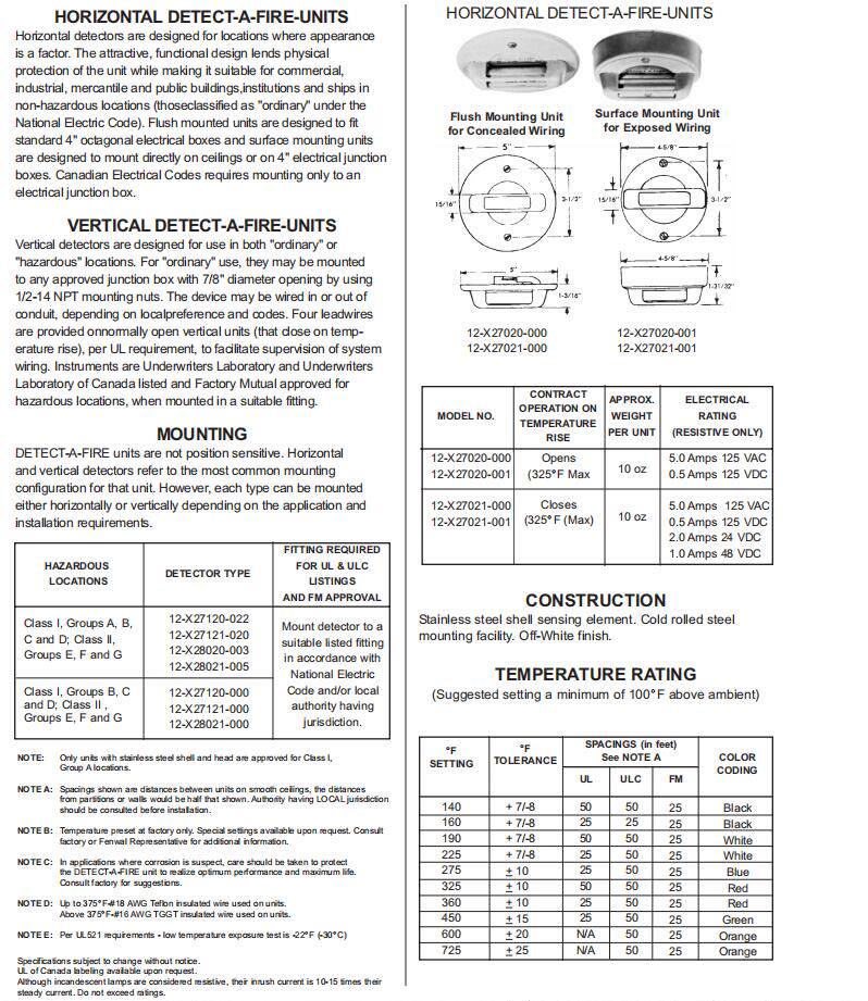 FENWAL Детектор температуры 12-E27121-000-160F/12-E27121-000-190F ТЕМПРЕСС