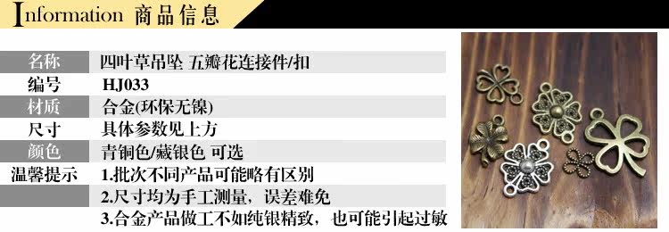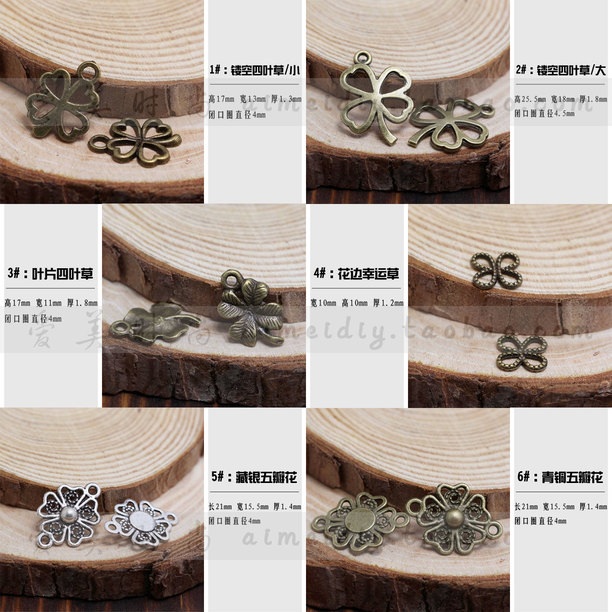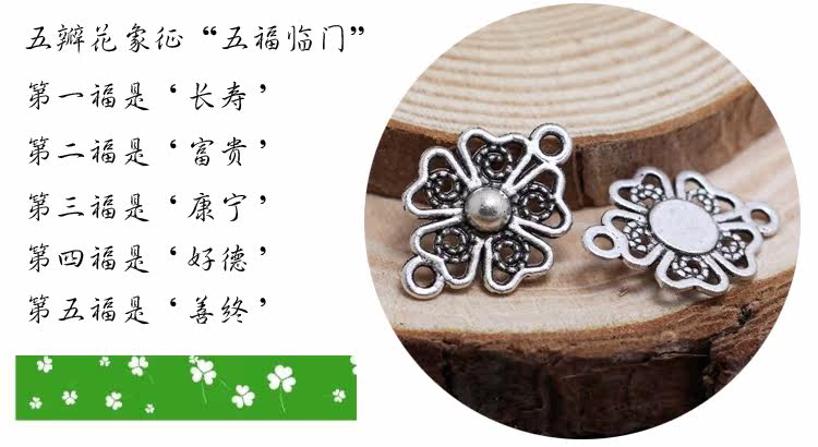 | Цвет: | (1# полый четырехлистный клевер/маленький) 1 шт., (2# полый четырехлистный клевер/большой) 1 шт., (3# лист клевера) 1 шт., (4# кружевной клевер) 1 шт., (5 # тибетский серебряный пятилепестковый цветочный разъем) 1 шт., (6 # бронзовый пятилепестковый цветочный разъем) 1 шт. |