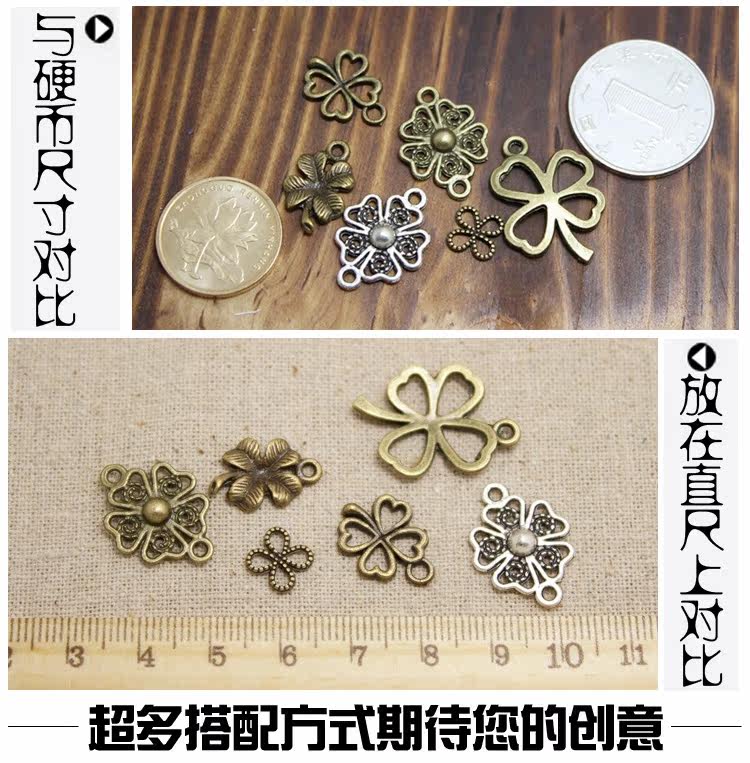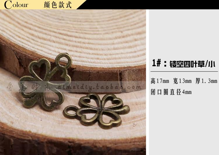 1# полый четырехлистный клевер/маленький: высокий 17мм Ширина 13 мм Толщина 1,3 мм Диаметр замкнутого кольца 4 мм