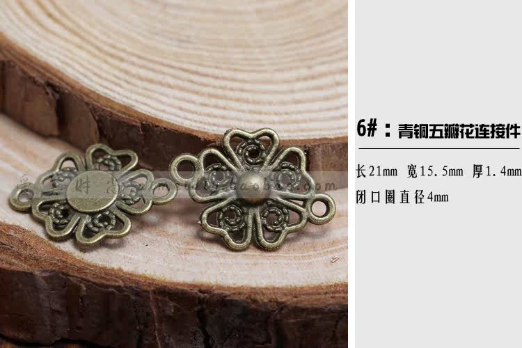 6# бронзовый пятилепестковый цветочный соединитель: длина 21мм Ширина 15,5 мм Толщина 1,4 мм Диаметр замкнутого кольца 4 мм