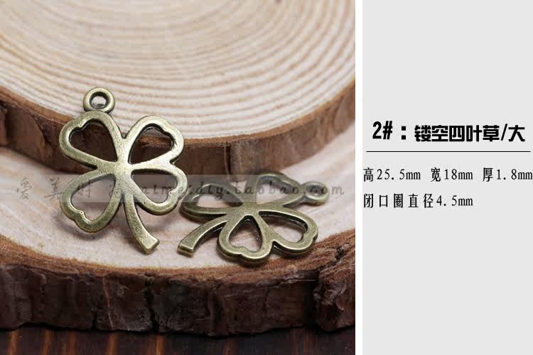 2# полый четырехлистный клевер/большой: высота 25,5.мм Ширина 18 мм Толщина 1,8 мм Диаметр замкнутого кольца 4,5 мм