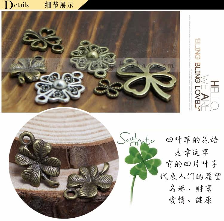 Ретро подвеска, браслет ручной работы, ожерелье, серьги, четырехлистный клевер, DIY