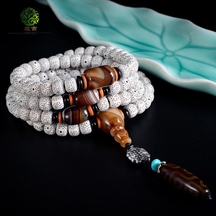 忠实 Натуральный агатовый шлем, комплект, четки из круглых бусин из грецкого ореха, четки бодхи, аксессуар, ювелирное украшение, тройник