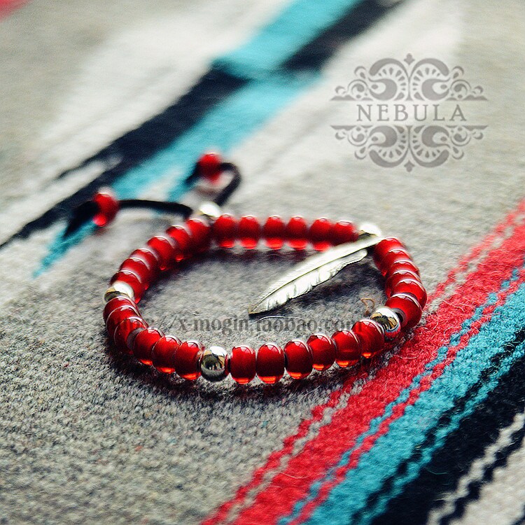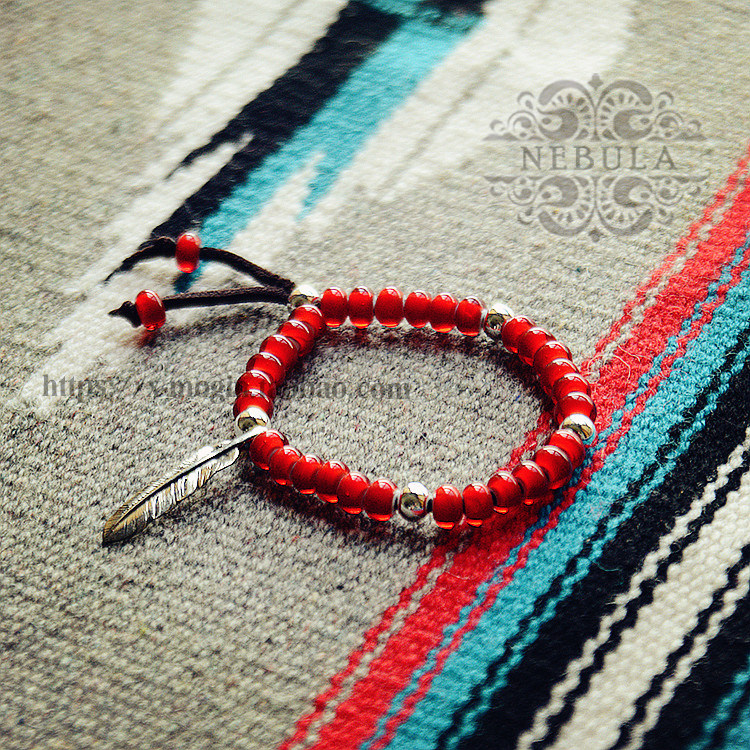 Тип больших красных остеклений+белые медные перья+серебряные бусинки