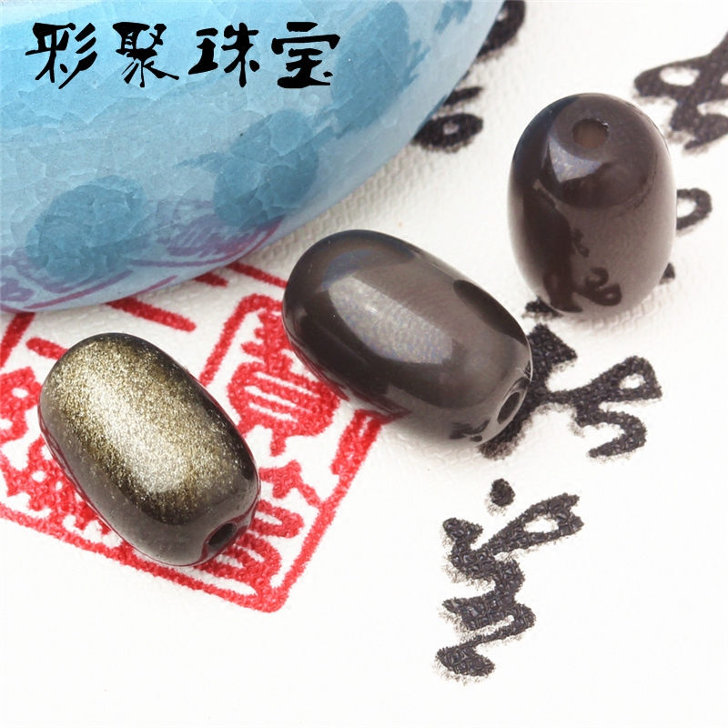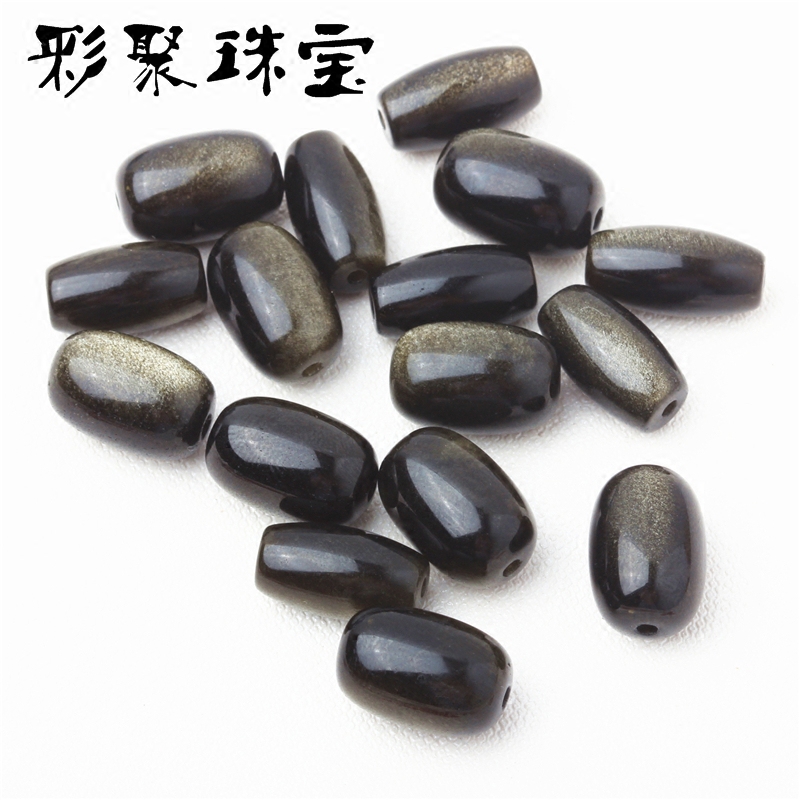 - Золотые бусины-бочонки из обсидиана диаметром 10мм/шт.
