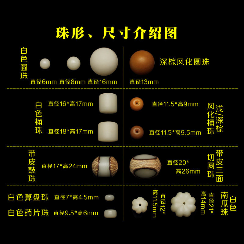 [Характеристики ребенка] Диаметр бусин составляет около: белые круглые бусины, маленькие 6 мм, белые круглые бусины, большие 8 мм/6 мм, коричневые состаренные круглые бусины 8 мм/6 мм, белые бочкообразные бусины диаметром около 17*16 мм; Светлые состаренные бусины в виде фруктовых бочонков диаметром около 11,5*9 мм, темно-коричневые бусины в виде состаренных фруктовых бочонков 11,5*9,5 мм, диаметр бусинок в форме бочонка, вырезанных посередине кожи, составляет 1,7*2,4 см, диаметр круглых бусин, вырезанных с трех сторон кожи, составляет около 2*2,6 см, белые бусины на счетах 7*4,5 мм, белые бусины-таблетки 9,5*6/10*6,5/11*7,5, бусины тыквы белые (маленький размер) 12*11,5мм,Белые бусины тыквы (большие размеры) 21*14мм.(Измерения вручную, пожалуйста, обратитесь к фактическому полученному продукту)