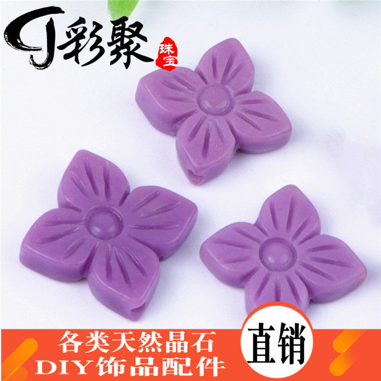 - Клевер четырехлистный из слюды фиолетового цвета с отверстиями 16-18мм/шт.