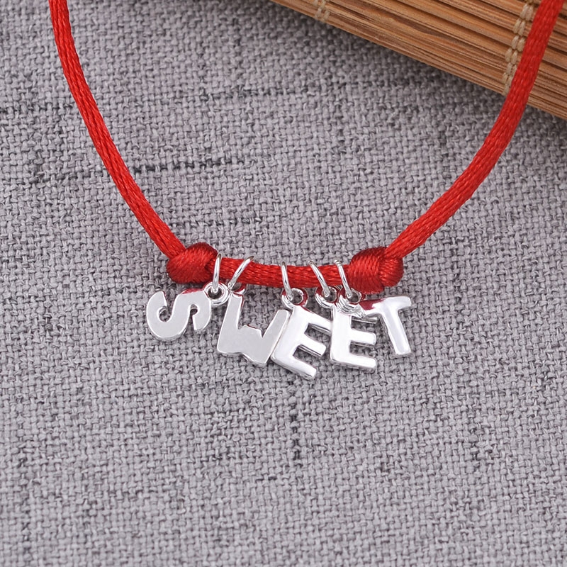 S925, мультяшная подвеска с буквами, браслет из красной нити, ожерелье, аксессуар, аксессуары, серебро 925 пробы, английские буквы, DIY
