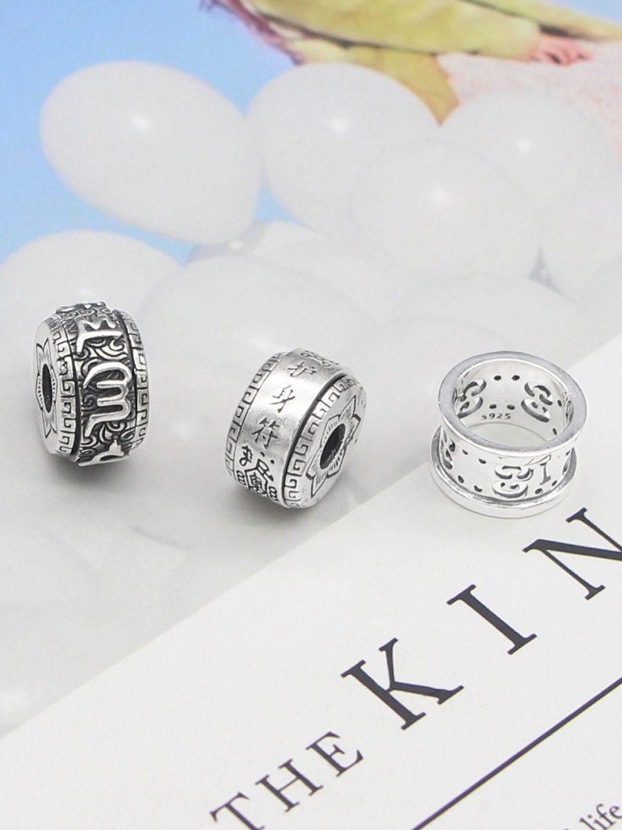 Двойные одиннадцать S925 Pure Silver Diy аксессуары Thailand шесть персонажей мантра мантра человек Большой полюс San Beads можно использовать в качестве ключицы