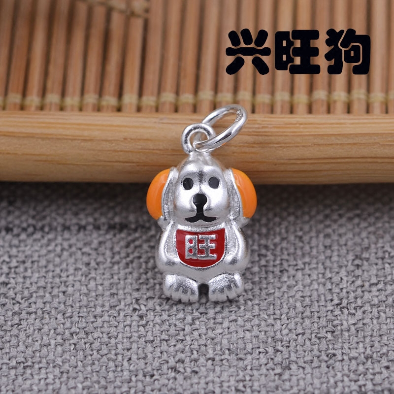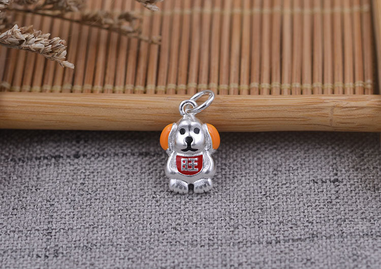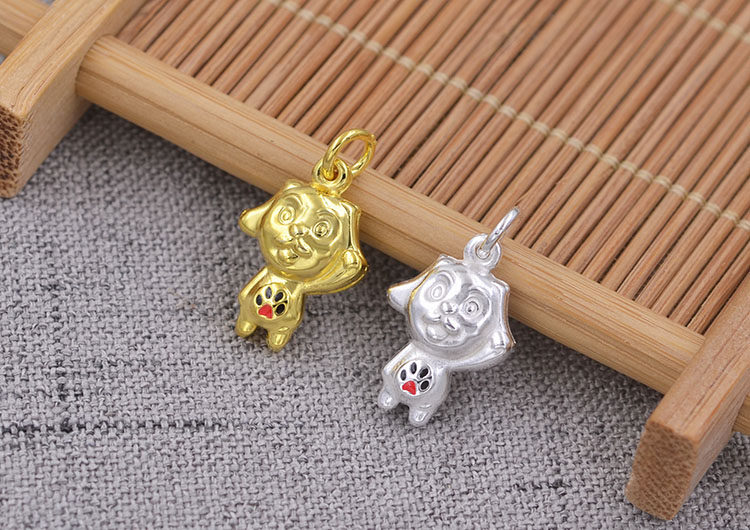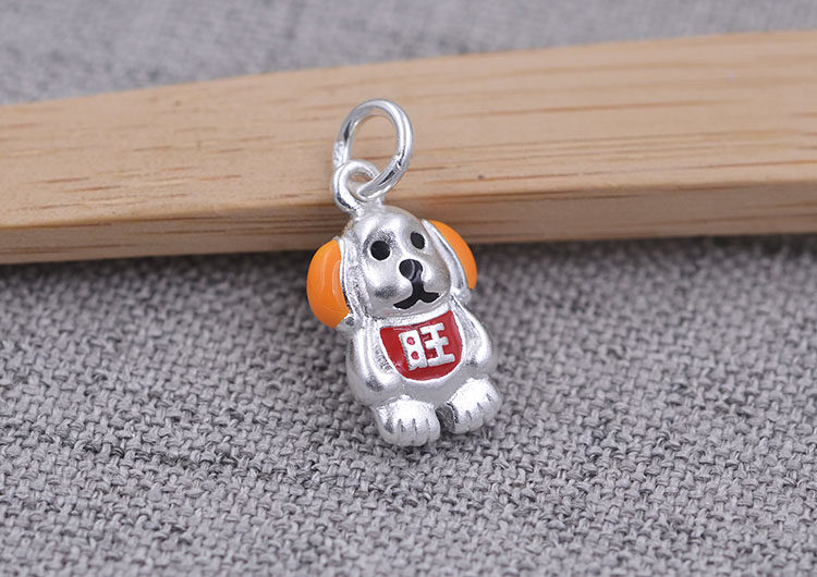 Счастливая собака (Высота составляет около 18,1 мм, ширина составляет около 12 мм, толщина составляет около 6,3 мм, а диаметр кольца составляет около 3,2 мм)