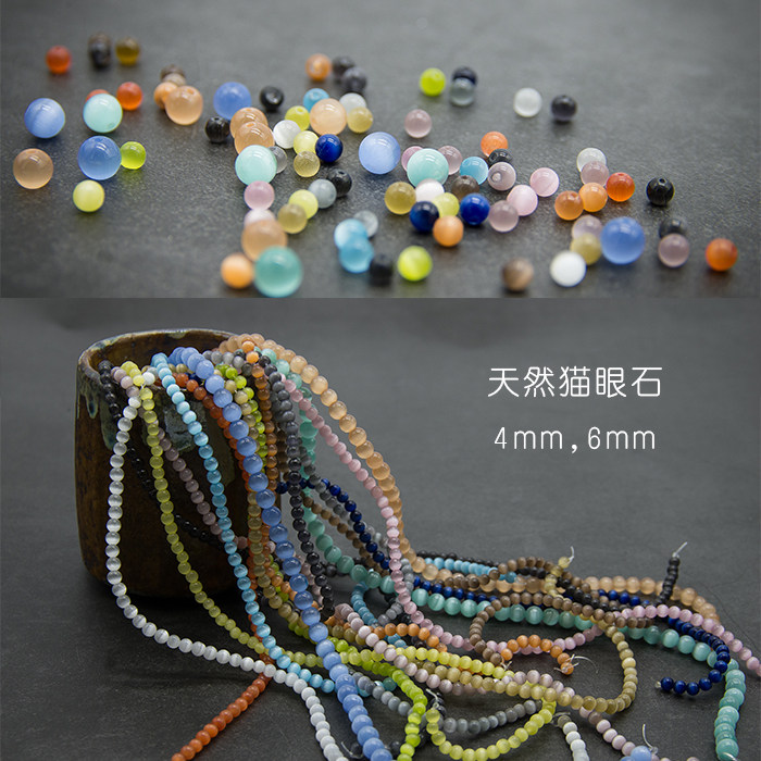 Натуральное украшение для ногтей, браслет, серьги, ожерелье, аксессуары, 4мм, 6мм, кошачий глаз, DIY