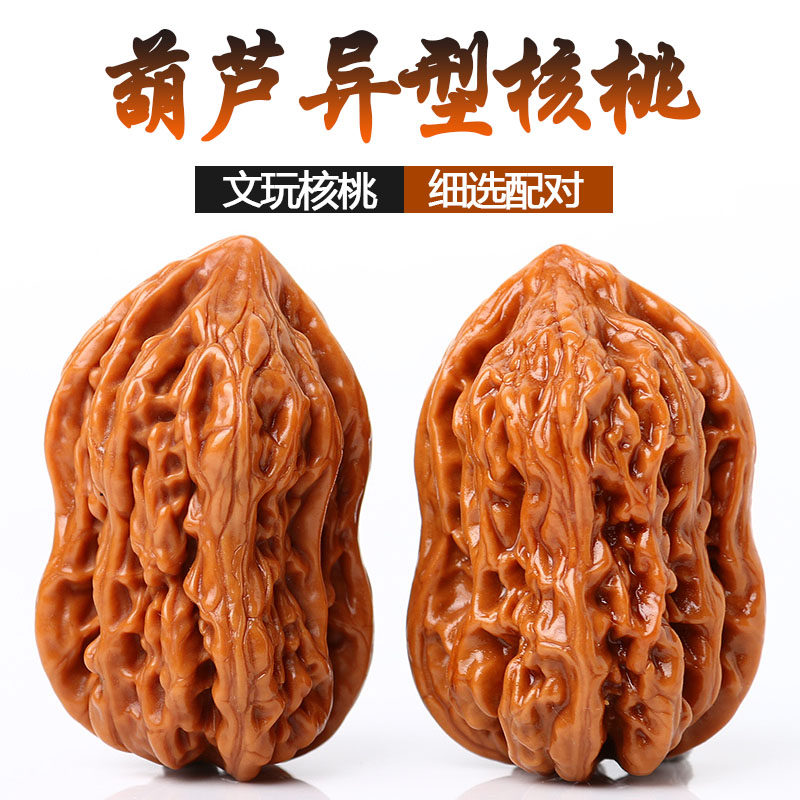 [野生文玩麻核桃花生核桃异形葫芦手把件大号手玩把玩件皮厚上色快]