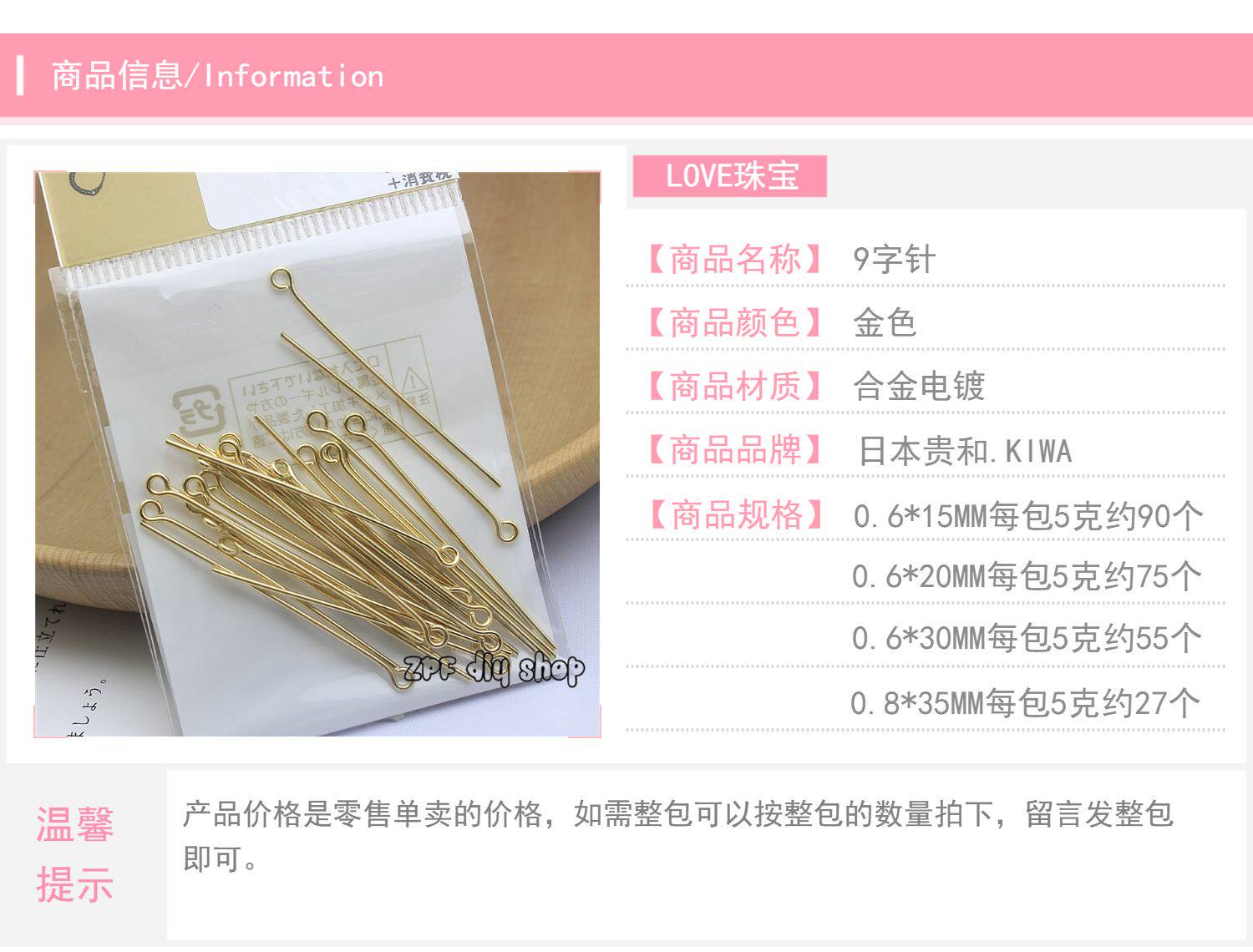 - Золото 0,6*15ММ10 шт.