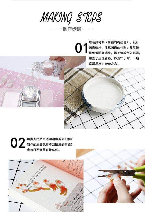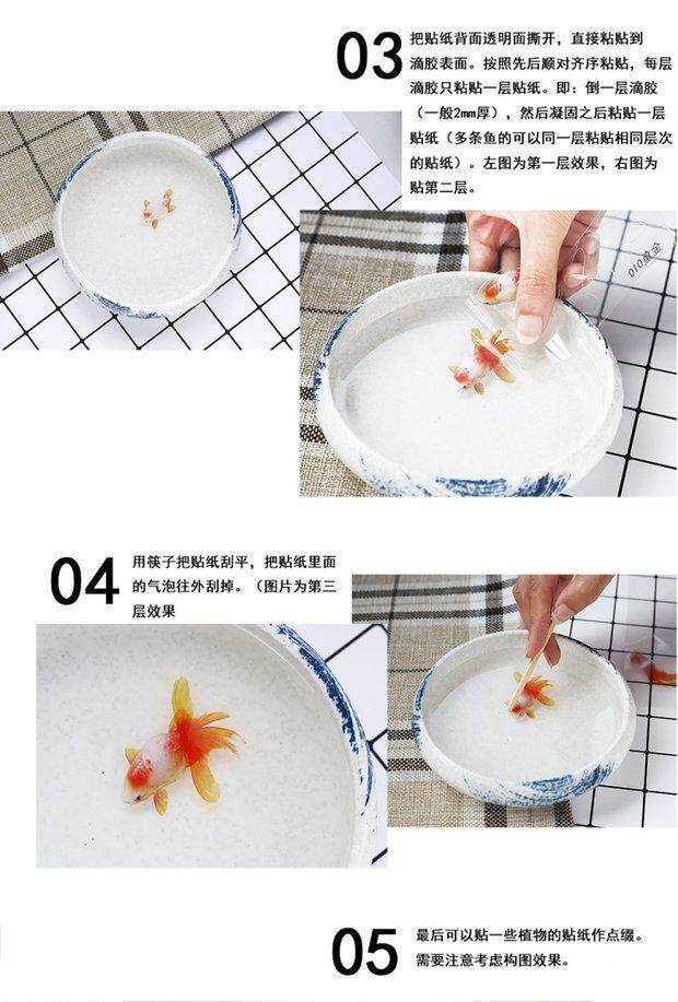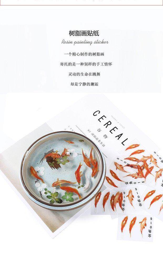 Наклейка с рисунком 3D -смолы, капли кристаллов золотой рыбки, золотая рыбная рыбная рыба