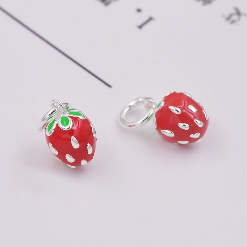 S925, свежая клубника, подвеска, браслет из красной нити ручной работы, ожерелье, аксессуар с аксессуарами, серебро 925 пробы, DIY