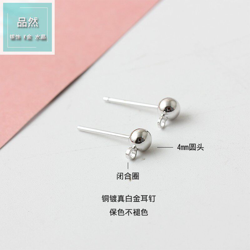 - Платиновые серьги, 4mm, 100 шт