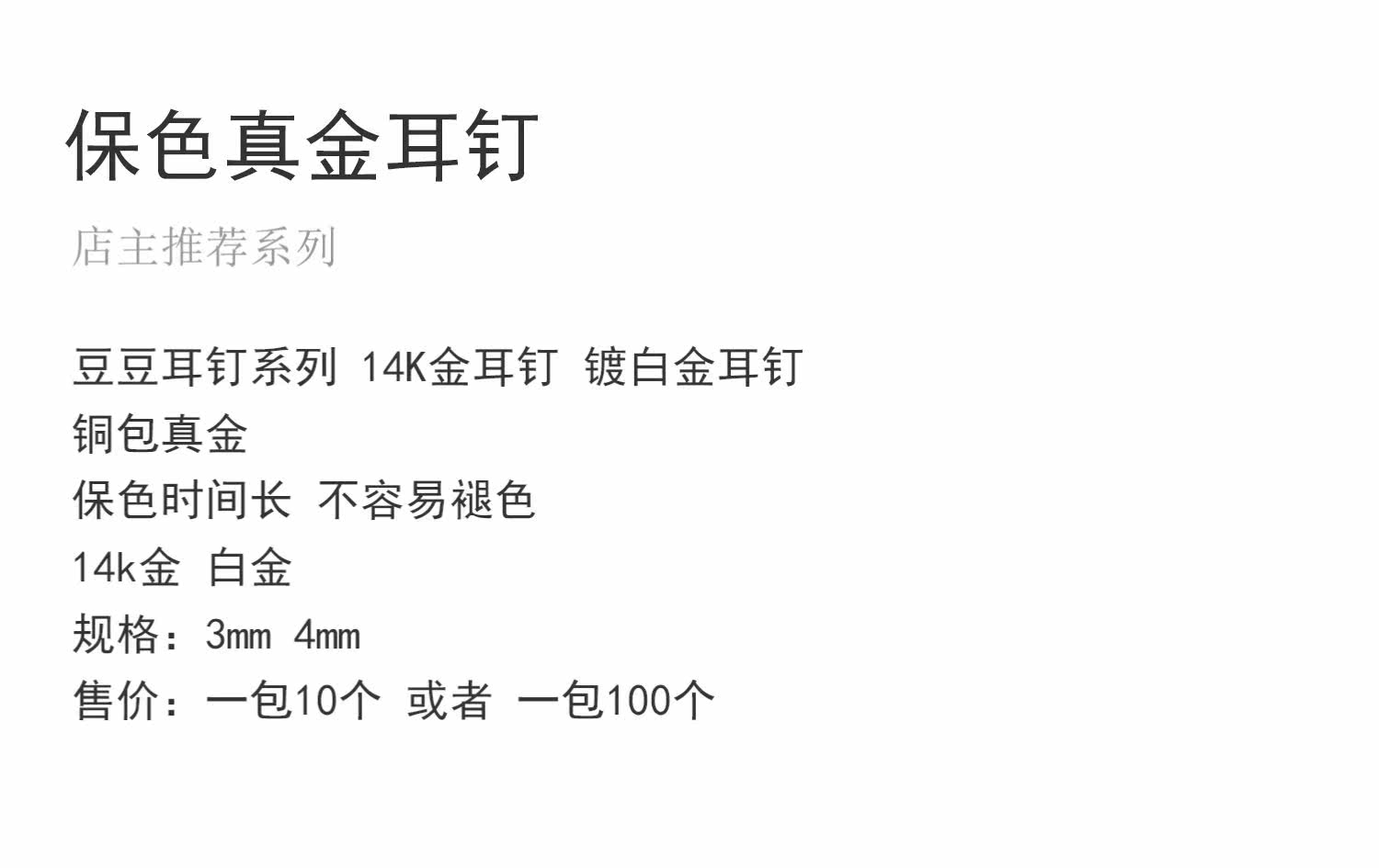 | Цвет: | Серьги, 4mm, золото 14 карат, 10 шт, Платиновые серьги, 4mm, 10 шт, Платиновые серьги, 4mm, 100 шт, Серьги, 4mm, золото 14 карат, 100 шт, Серьги, 3mm, золото 14 карат, 10 шт, Серьги, 3mm, золото 14 карат, 100 шт, Платиновые серьги, 3mm, 10 шт, Платиновые серьги, 3mm, 100 шт |