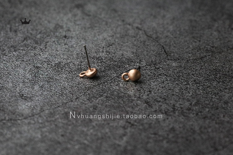 Серьги с круглой головкой из азиатского кофе и золота (передняя часть), размер: 8*5*3 мм.