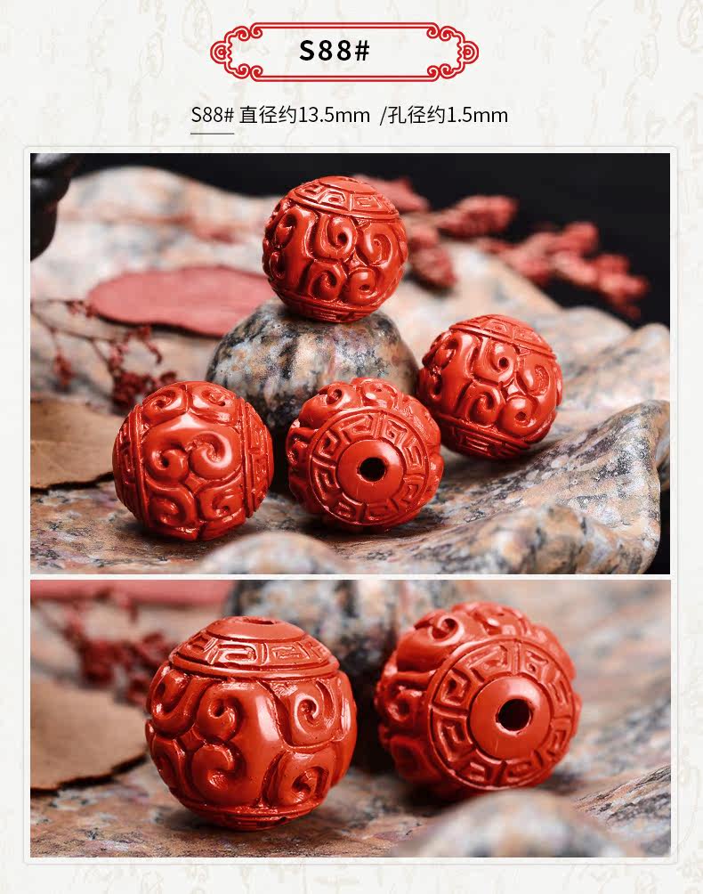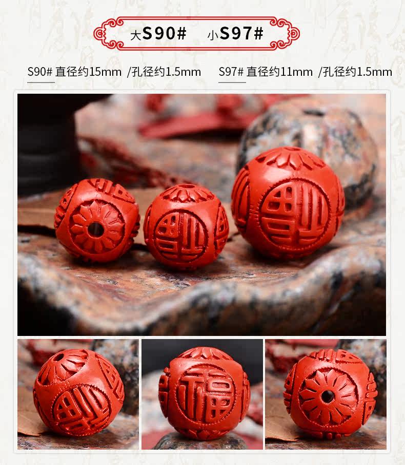 Аксессуары, резные бусины, украшение-шарик, цвета киновари