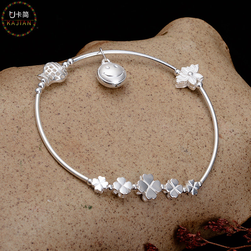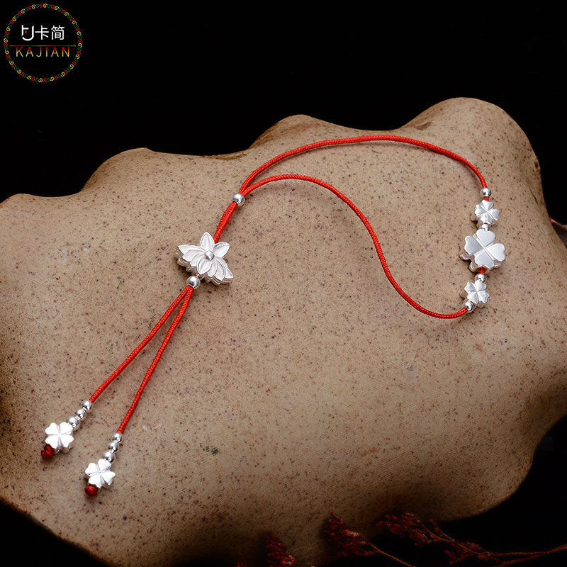卡简 Бусины, браслет из бисера ручной работы, плетеный браслет из красной нити, аксессуар, серебро 925 пробы, четырехлистный клевер